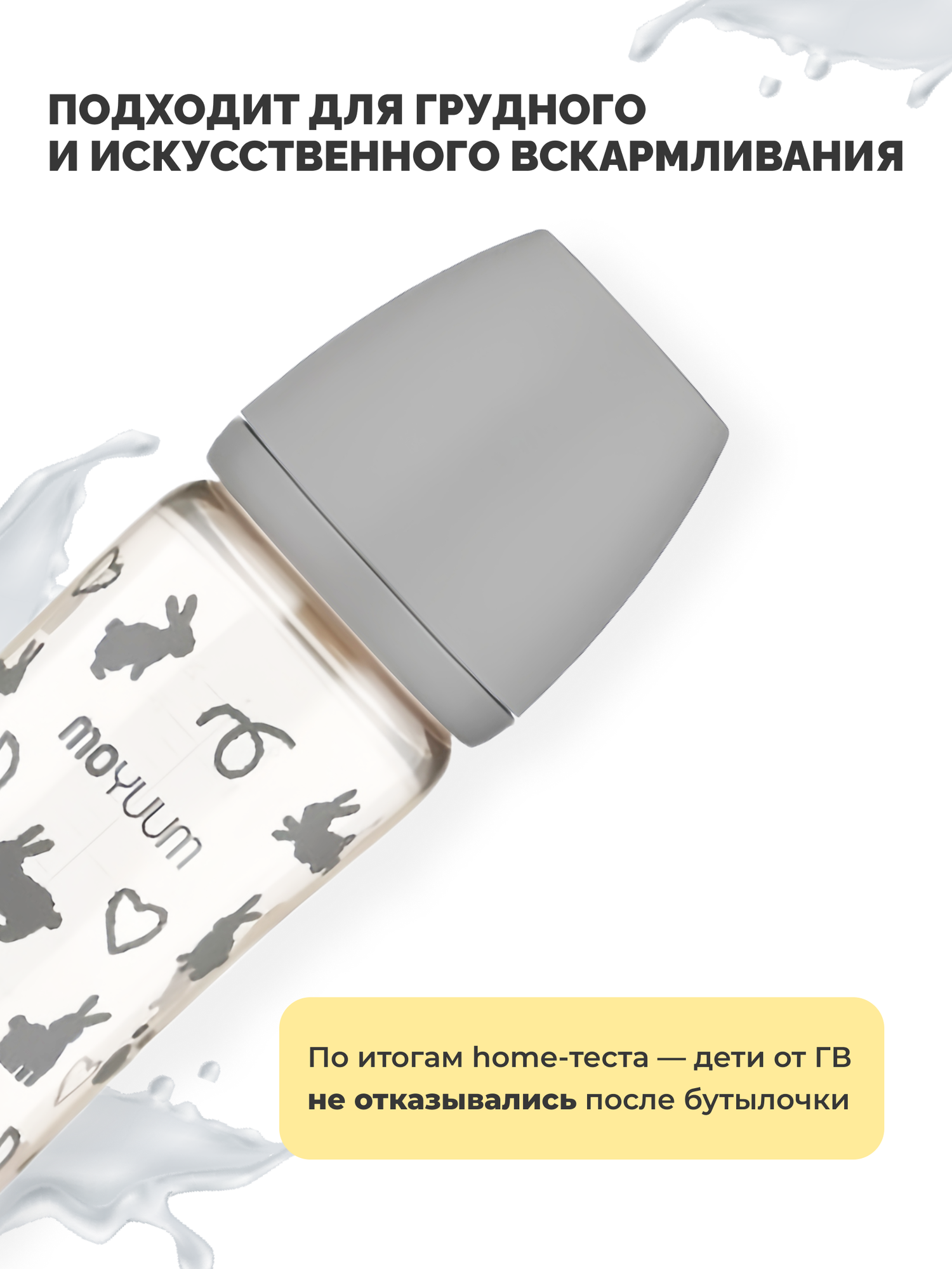 Купить Антиколиковая бутылочка детская Moyuum "Зайчик" для новорожденных, 0+ мес. силиконовая соска, 270мл