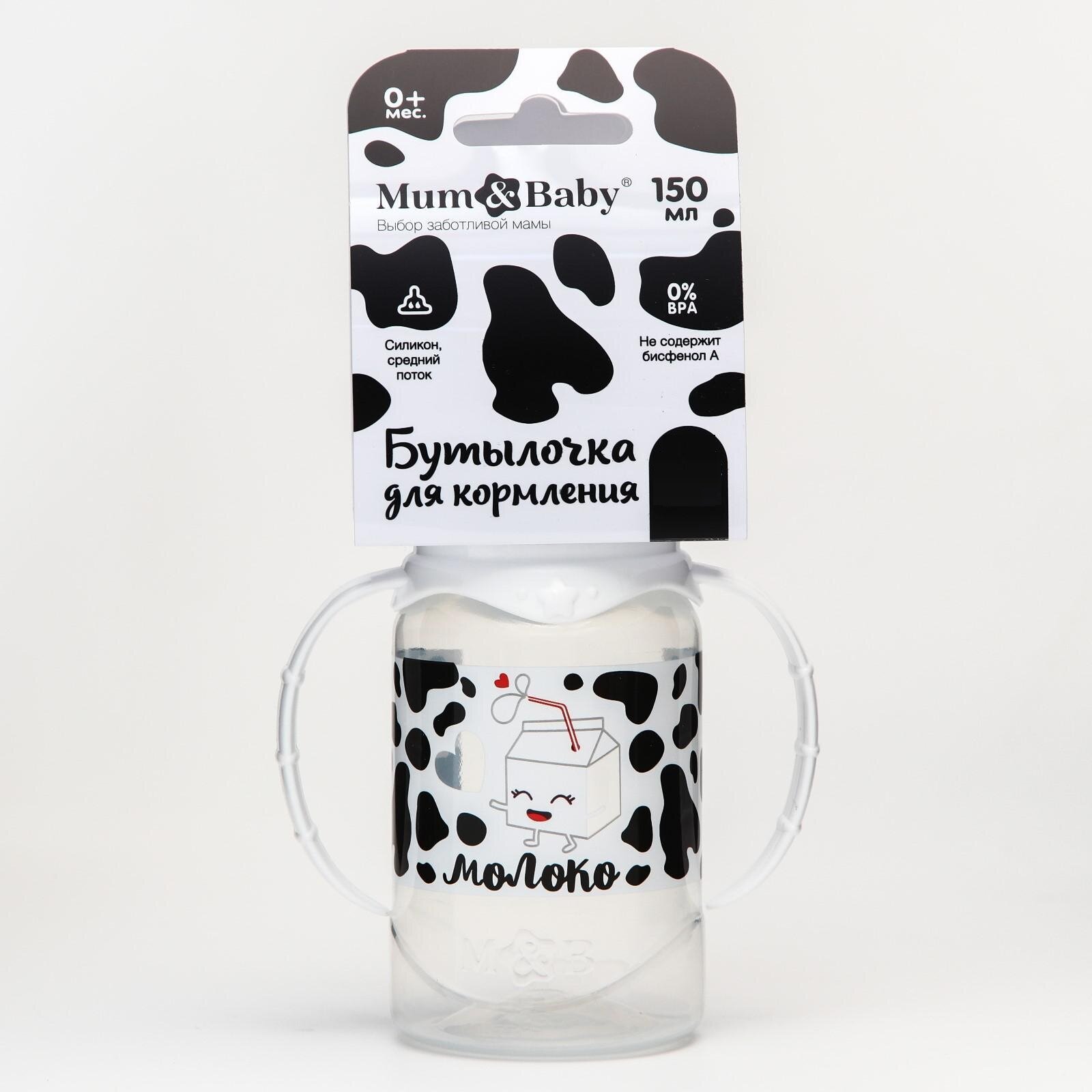 Бутылочка для кормления "Люблю молоко"150 мл цилиндр, с ручками, цвет белый интересное: