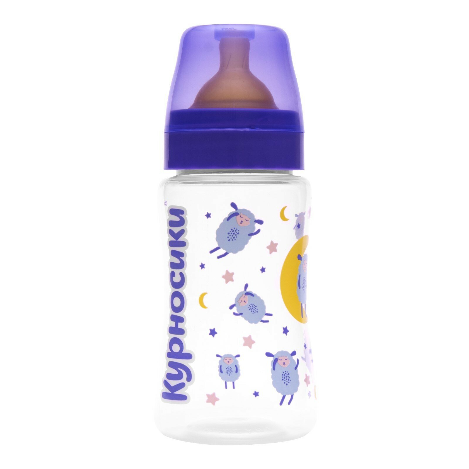Купить Бутылочка для кормления новорожденных Курносики с широким горлом и латексной соской молочной, 250 мл.