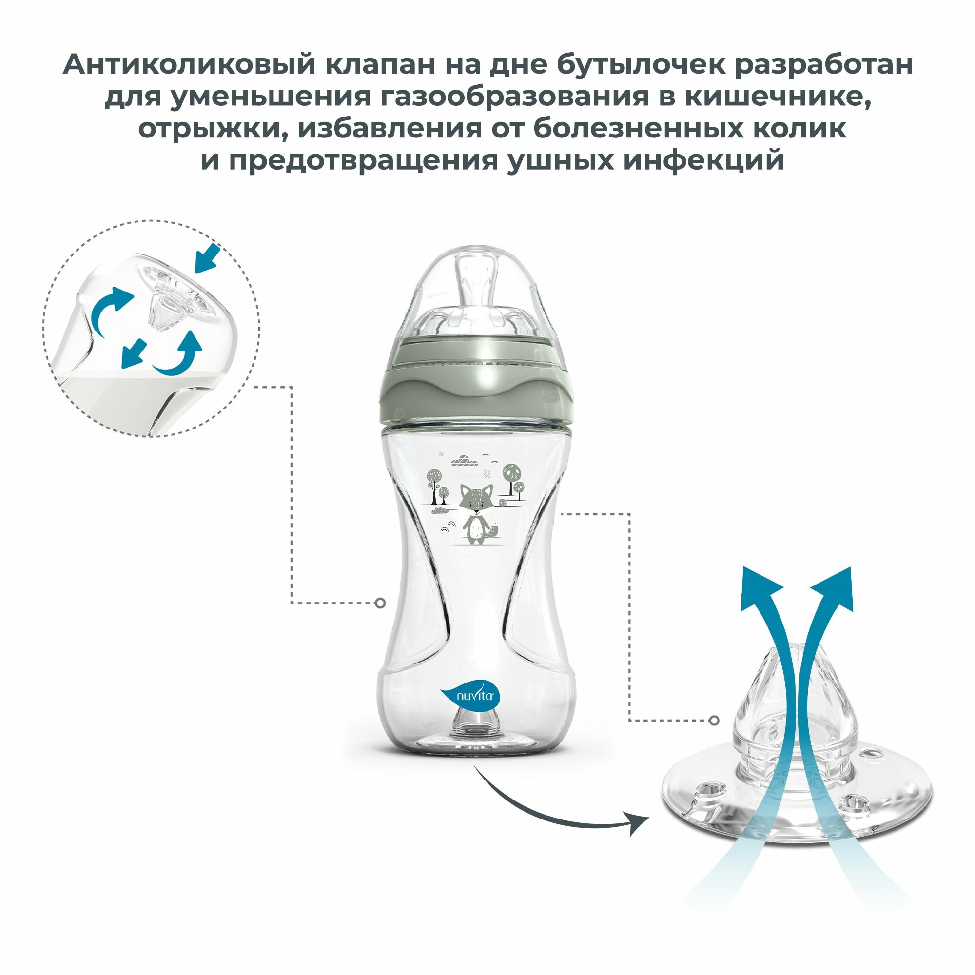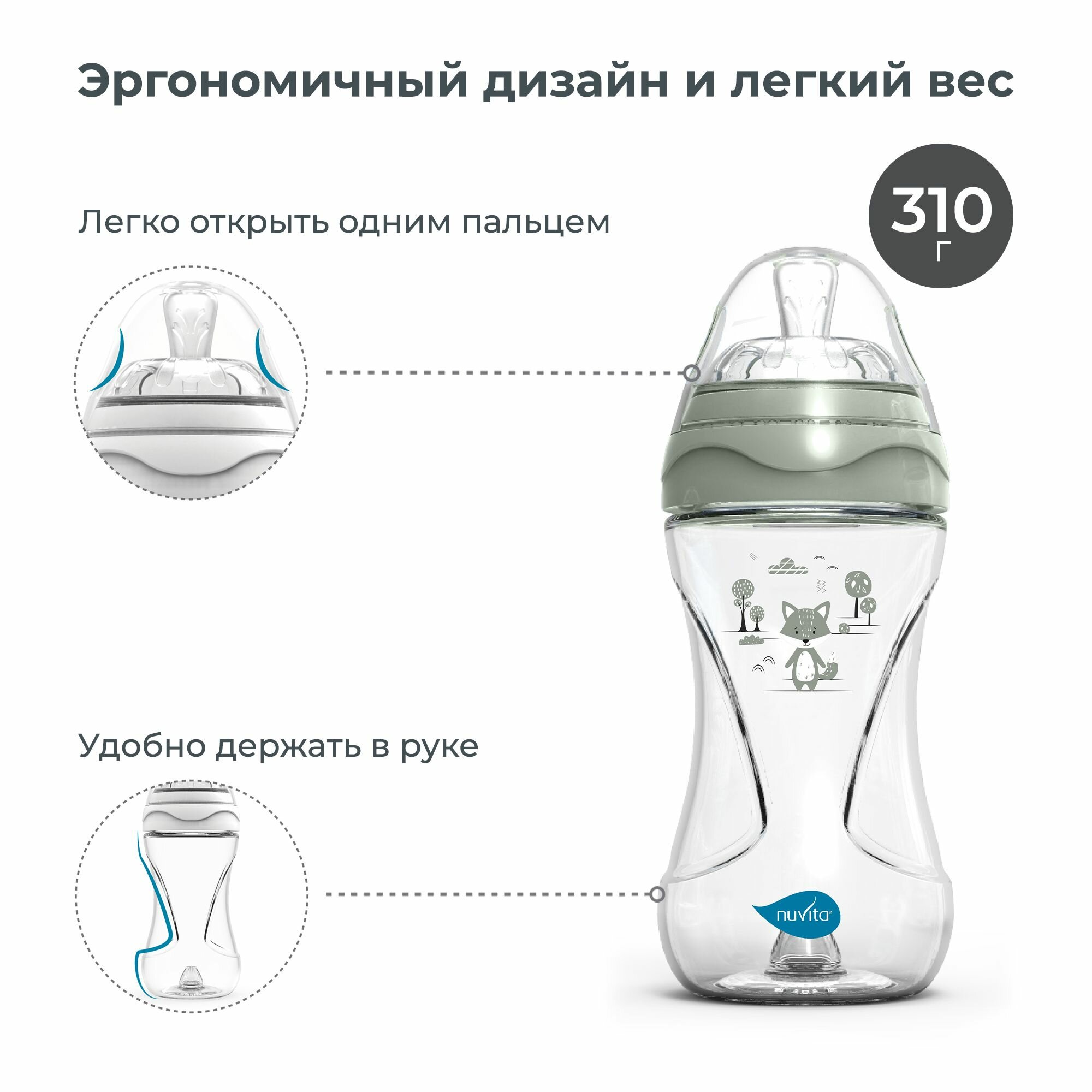 Бутылочка детская антиколиковая Nuvita Materno Feel 250 мл, пластиковая, для кормления детей с 2 месяцев, со средним потоком, серо-зеленый интересное:
