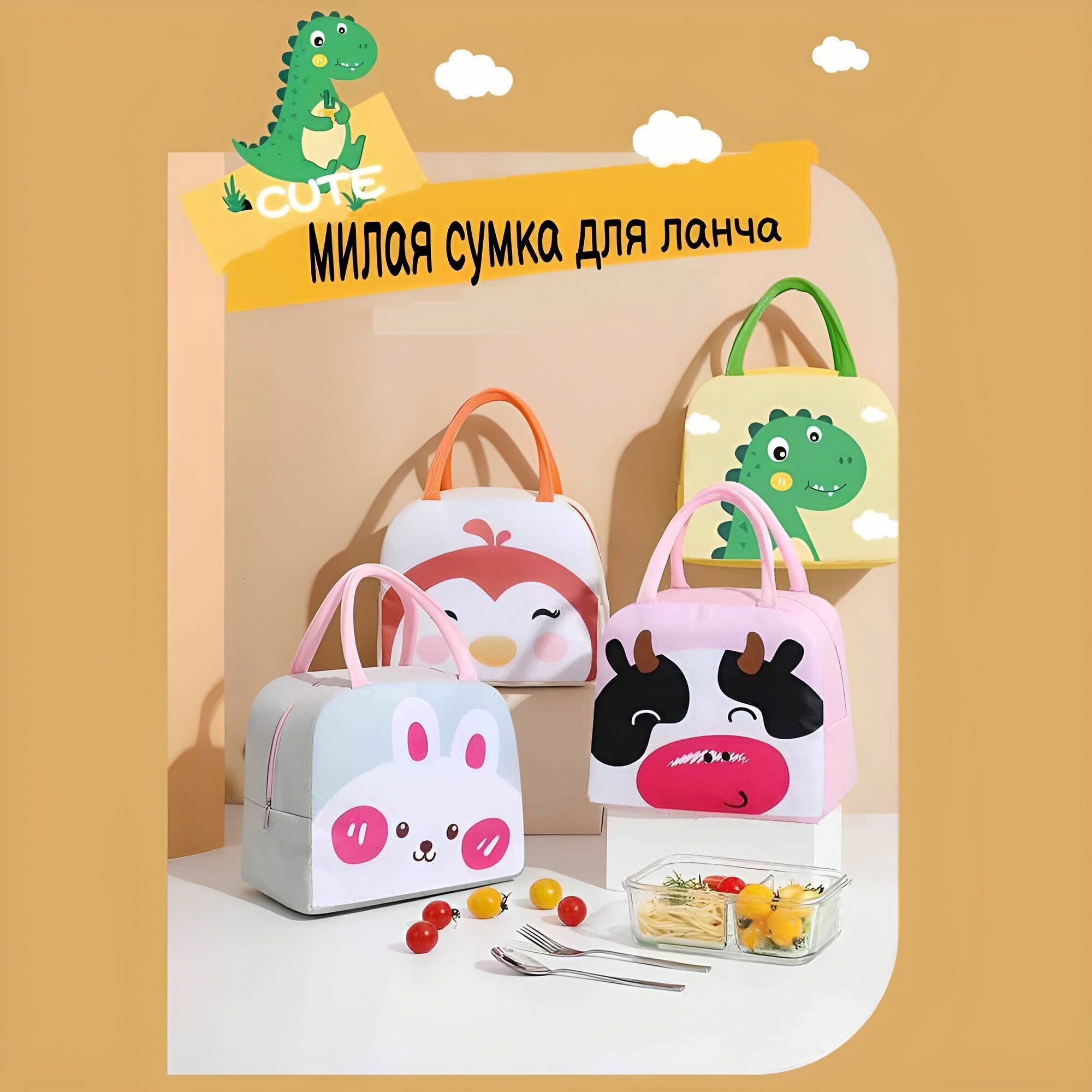 Детская термосумка Baby2 для ланч бокса, термоса, бутылочек, сумка для ланча, пикника (Корова)
