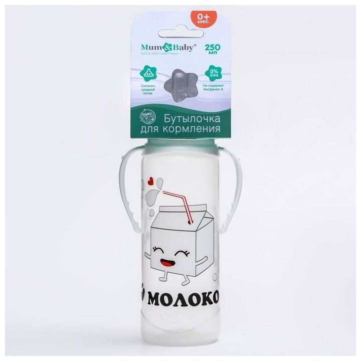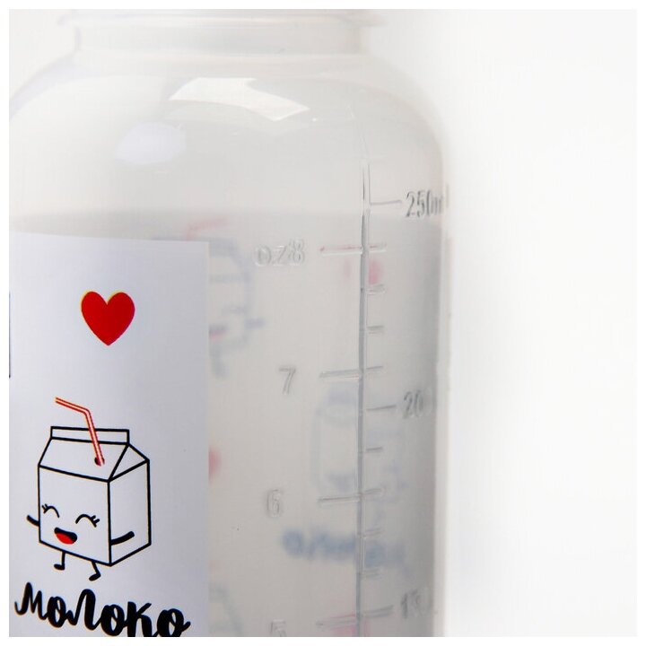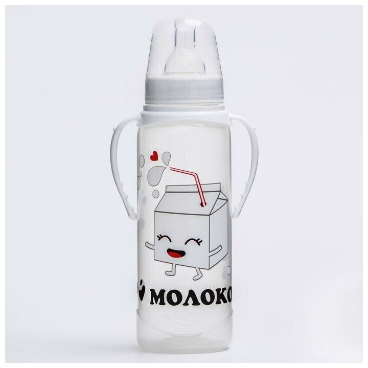 Бутылочка для кормления "Люблю молоко" 250 мл, цилиндр, с ручками, цвет белый интересное: