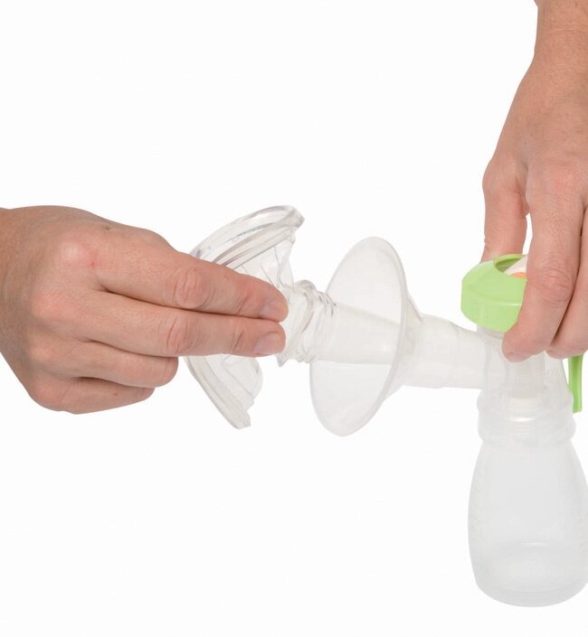 Молокоотсос ручной механический с бутылочкой для кормления ШГ и соской, 150 мл., цвет белый