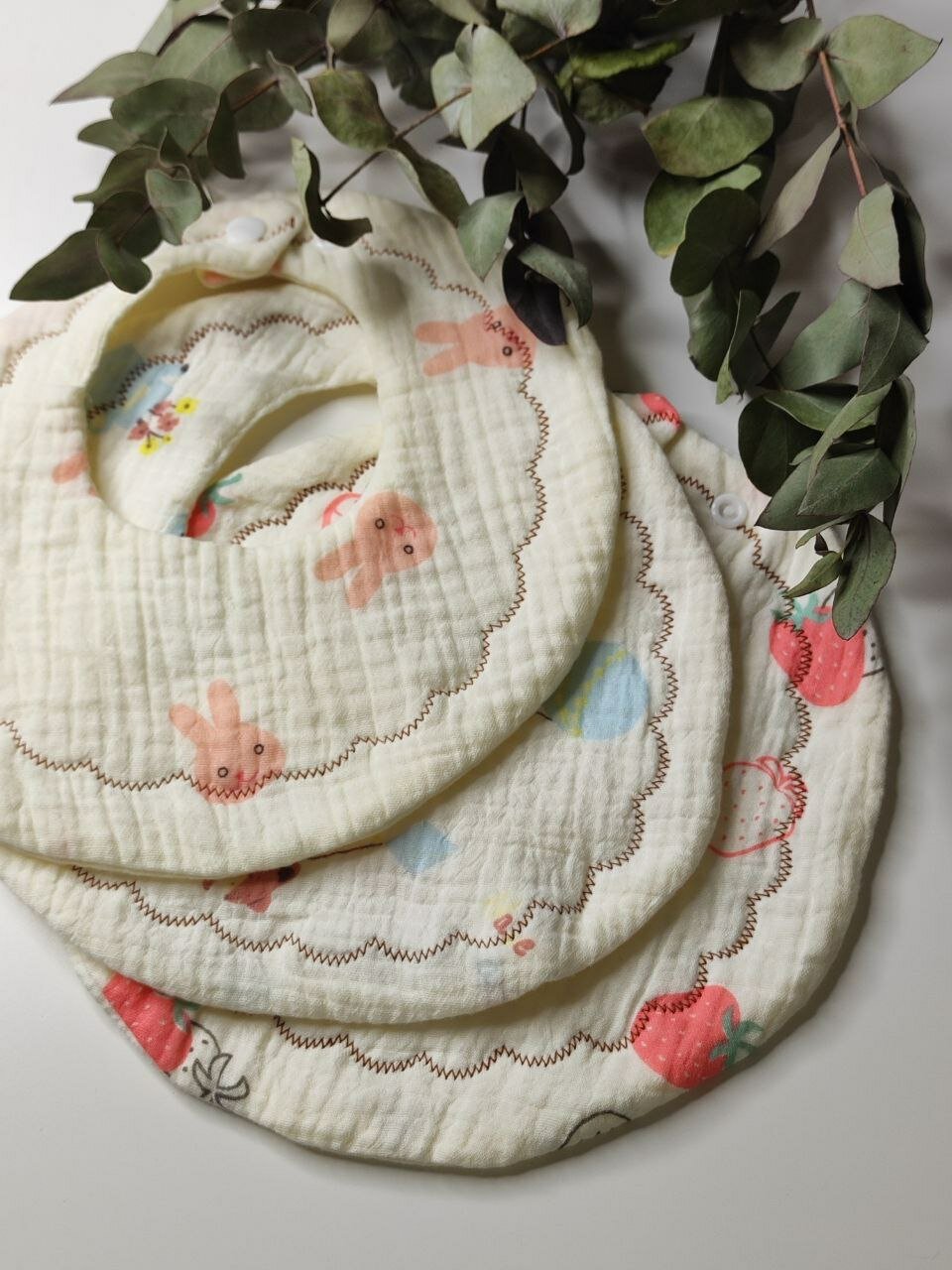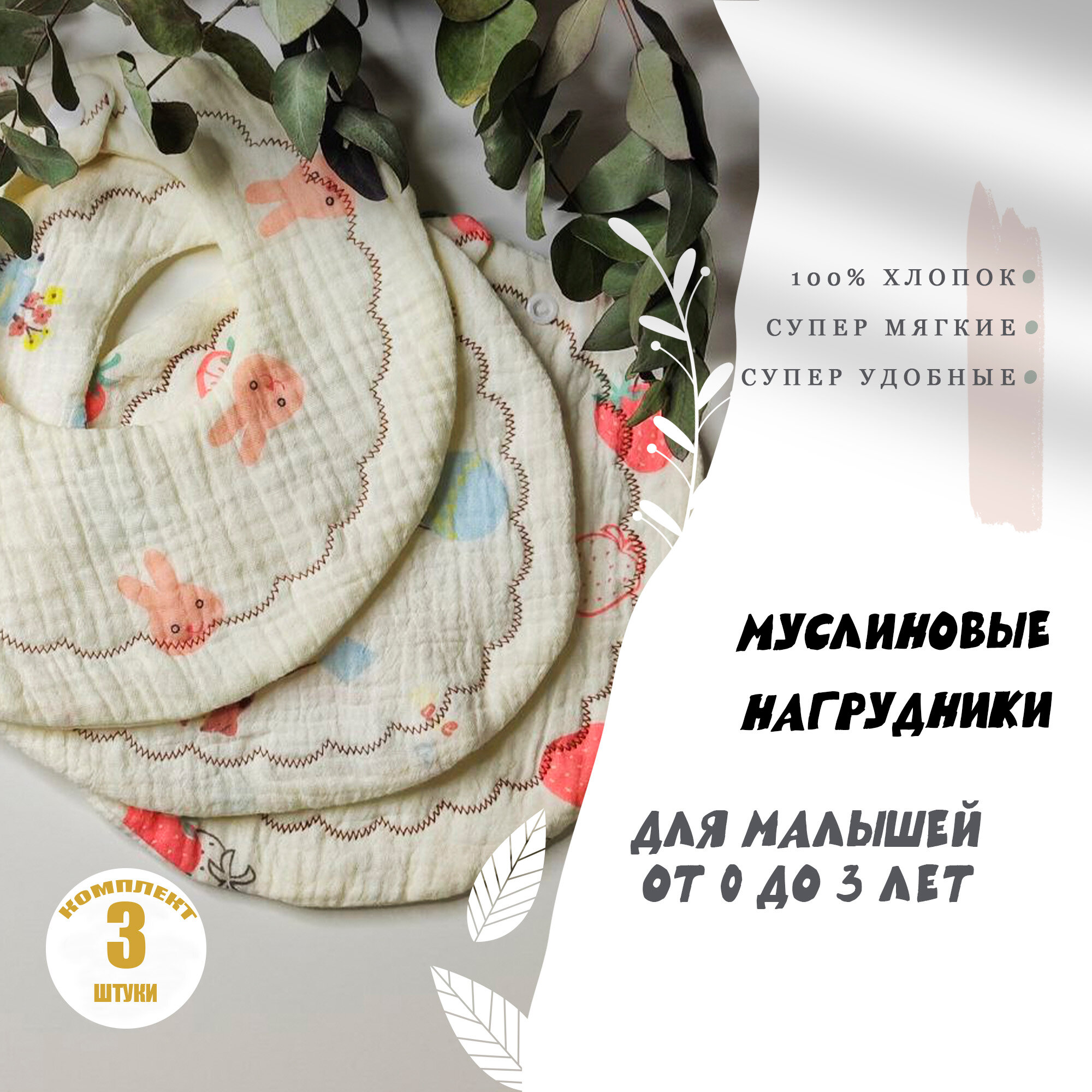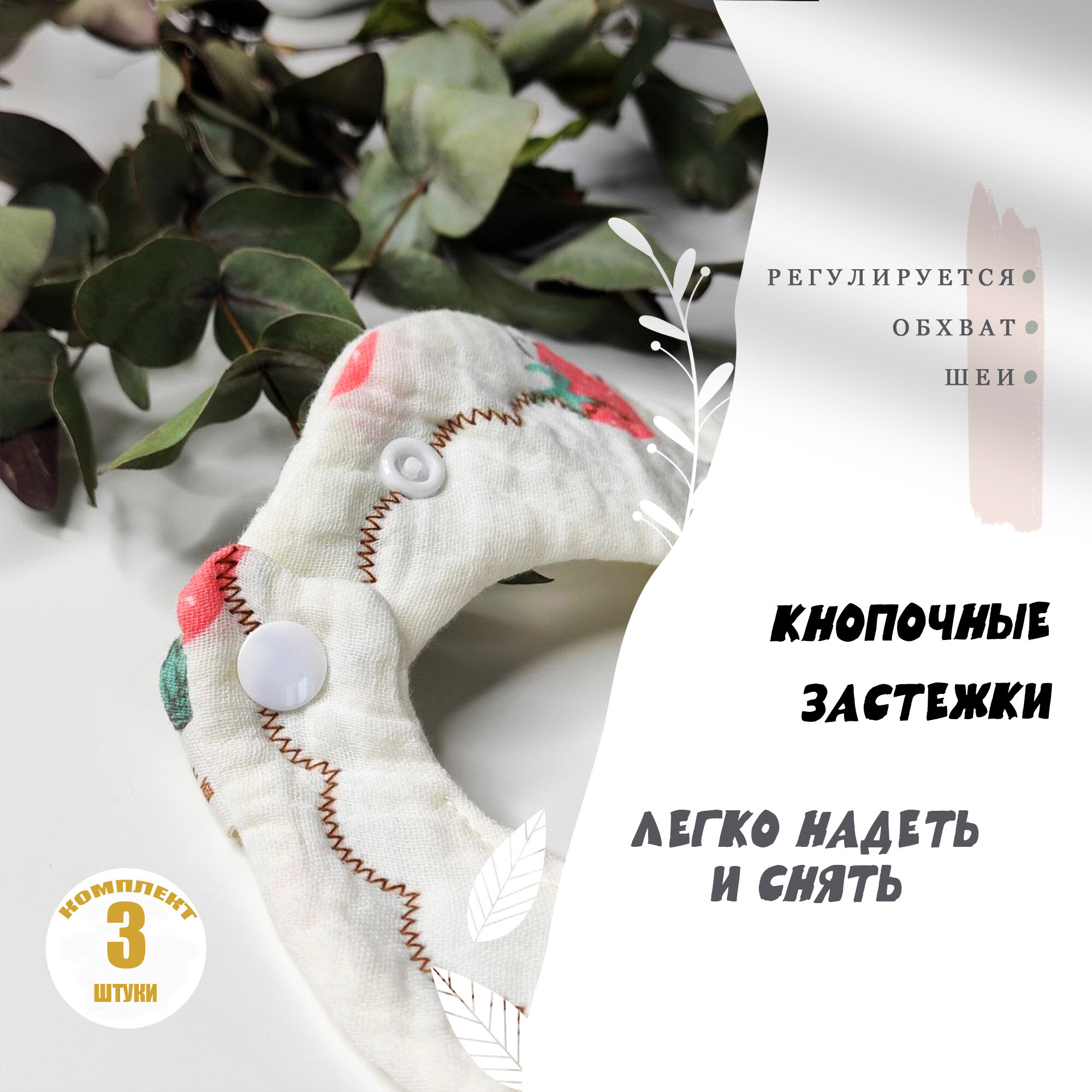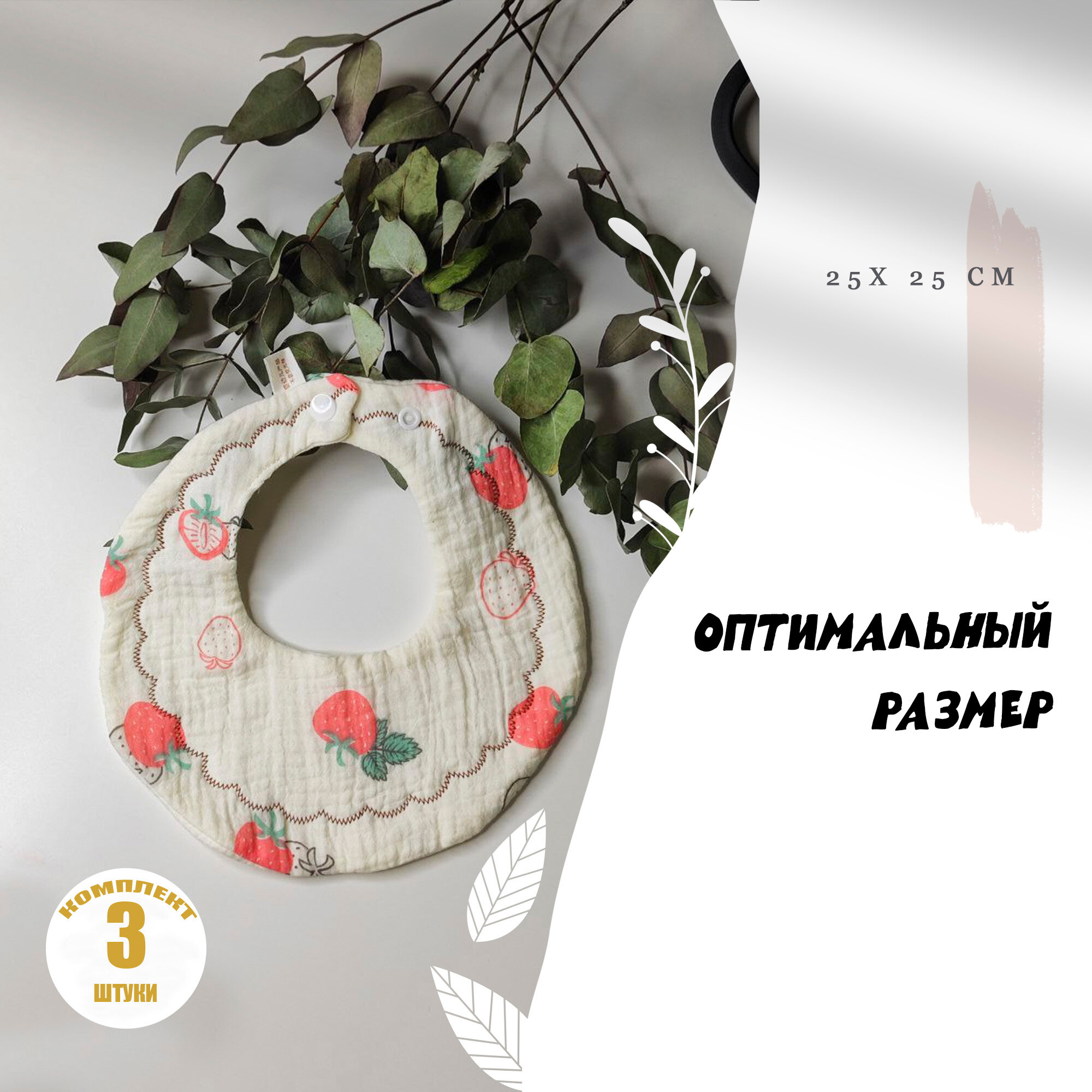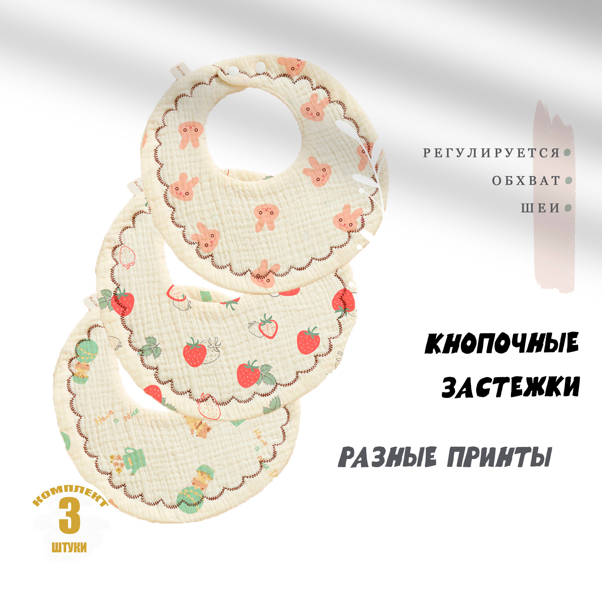 Слюнявчики для новорожденных / нагрудник для кормления, на кнопке. Набор 3 шт. Муслин. Размер 25х25 см. Цвет бежевый интересное: