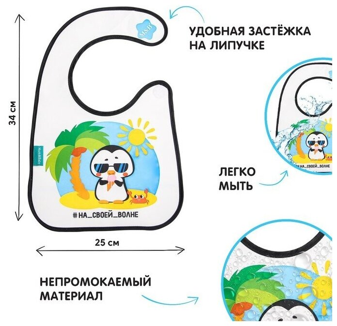 Купить Нагрудник для кормления «тренд. Персонажи» непромокаемый на липучке, с карманом, микс, 2 штуки