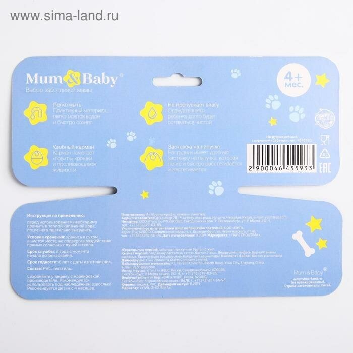 Нагрудник для кормления «тренд. Собачки» непромокаемый на липучке, с карманом, 4645593 интересное: