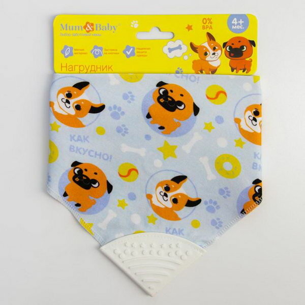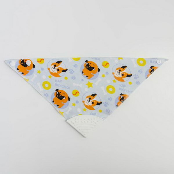 Нагрудник-бандана/слюнявчик для кормления "Мишка Принц" непромокаемый с прорезывателем, на кнопке интересное: