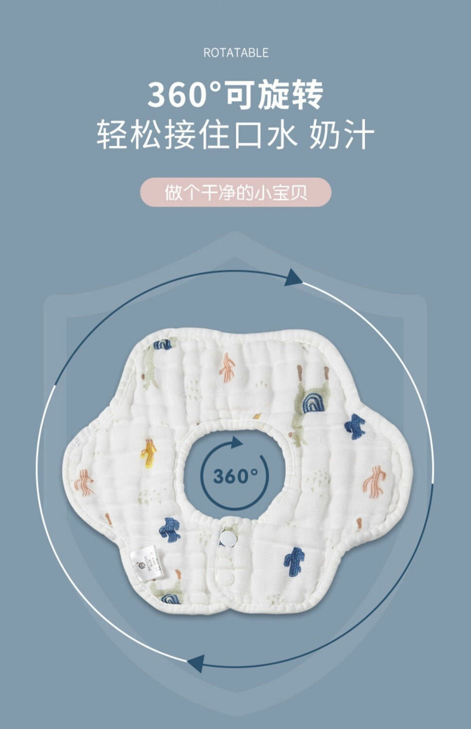 Нагрудник для кормления "Кролик с редиской", шестислойная сетчатая ткань, вращающийся, защита от слюны