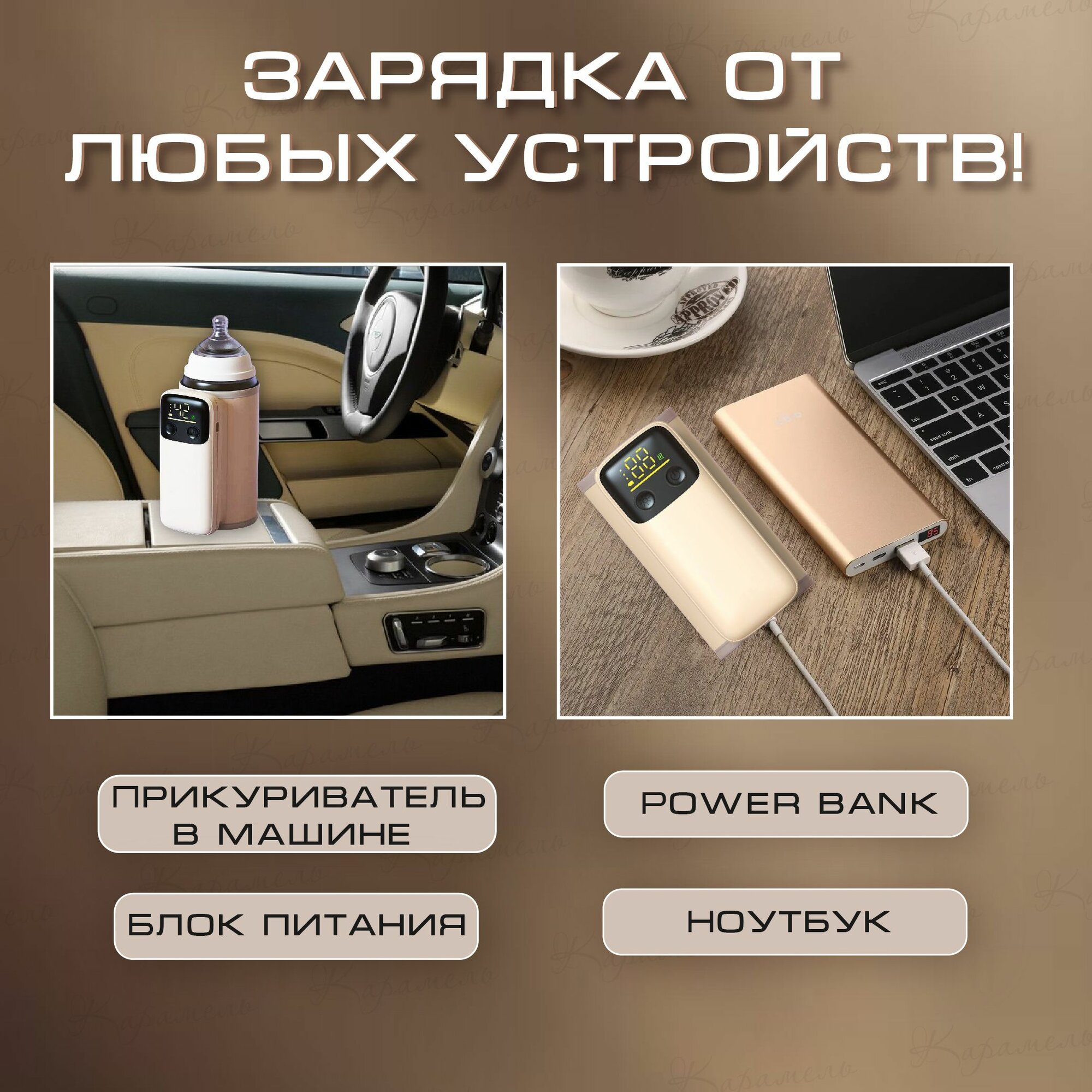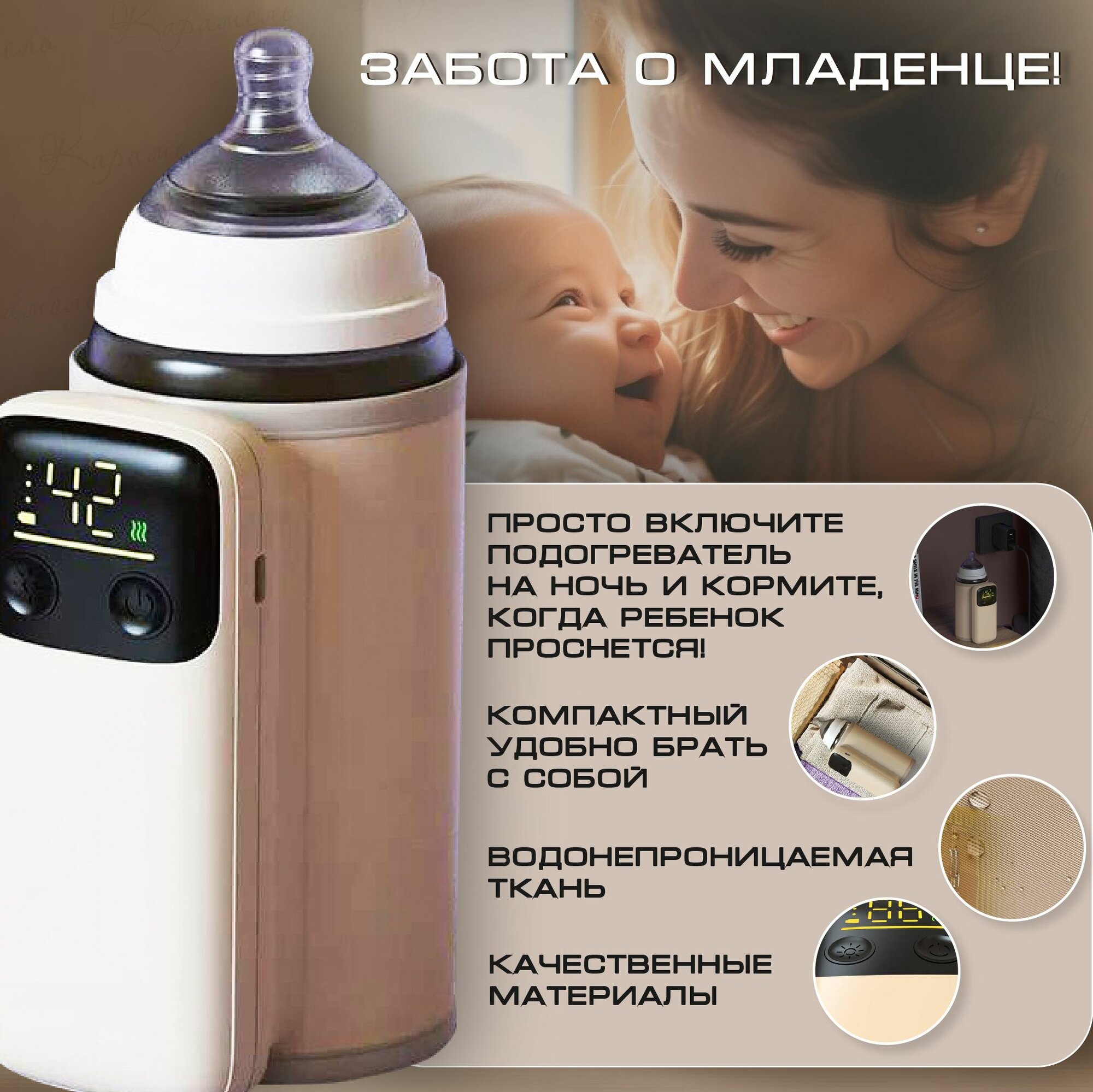 Портативный подогреватель для бутылочек на аккумуляторе с функцией выбора температуры и электронным дисплеем интересное: