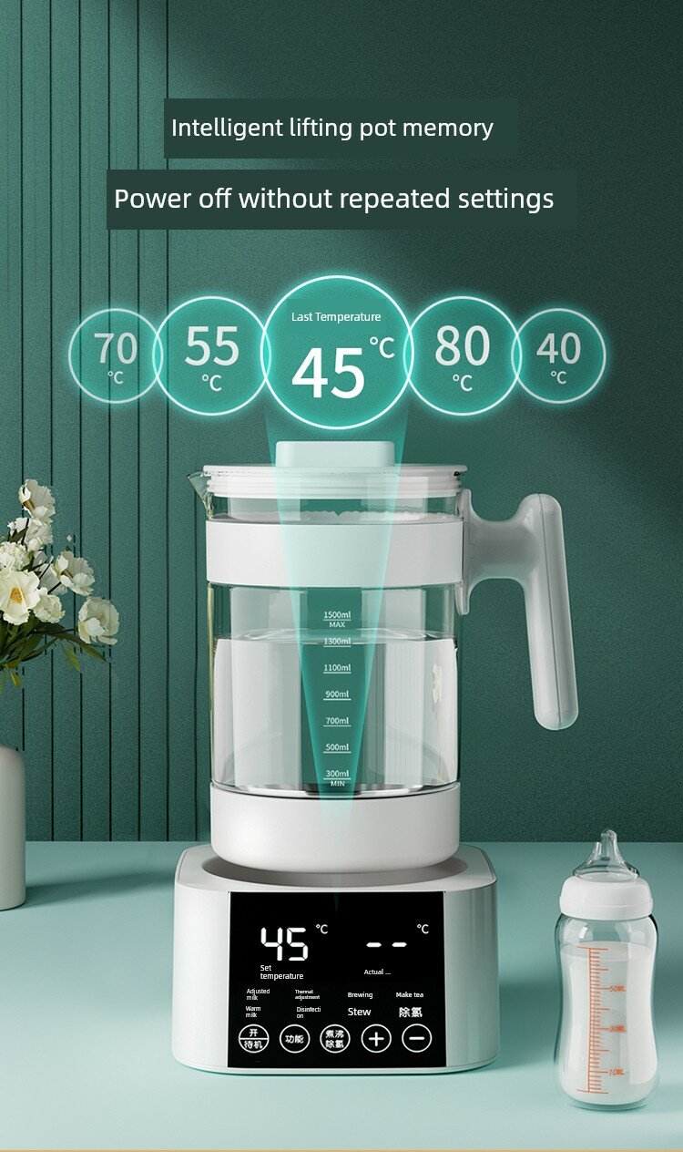 Купить Детский чайник с постоянной температурой 1.5л, молочно-белый, большой экран, нагревательный элемент 316L, память подъема