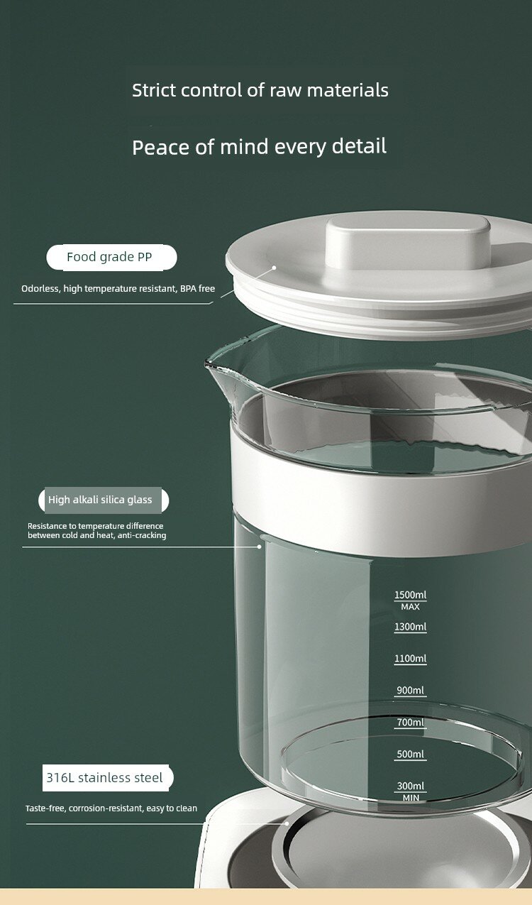 Детский чайник с постоянной температурой 1.5л, темно-зеленый, большой экран, нагревательный элемент 316L + корзина для подогрева молока