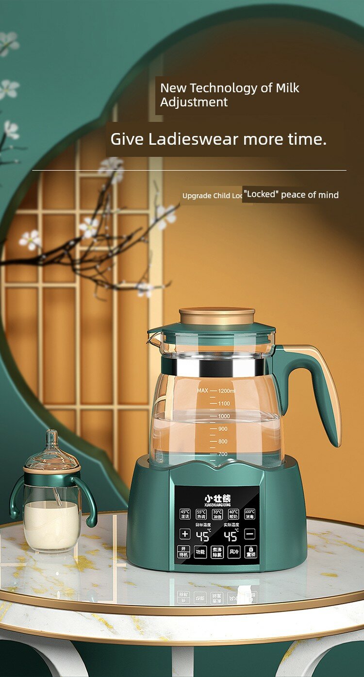 Детский чайник для подогрева молока, зеленый, 1.3 л, память, сталь 316L
