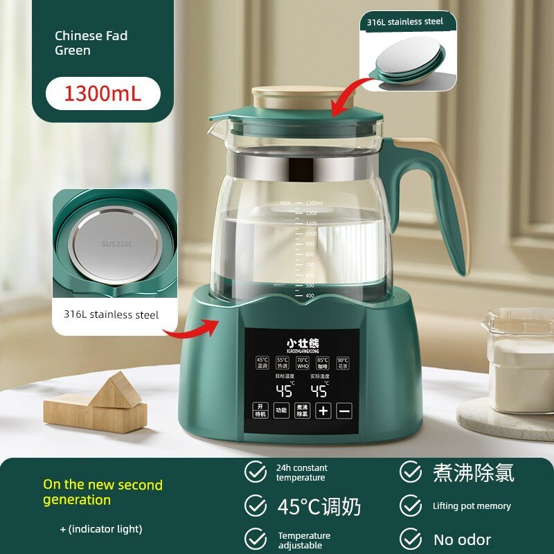 Детский чайник для подогрева молока, зеленый, 1.3 л, память, сталь 316L