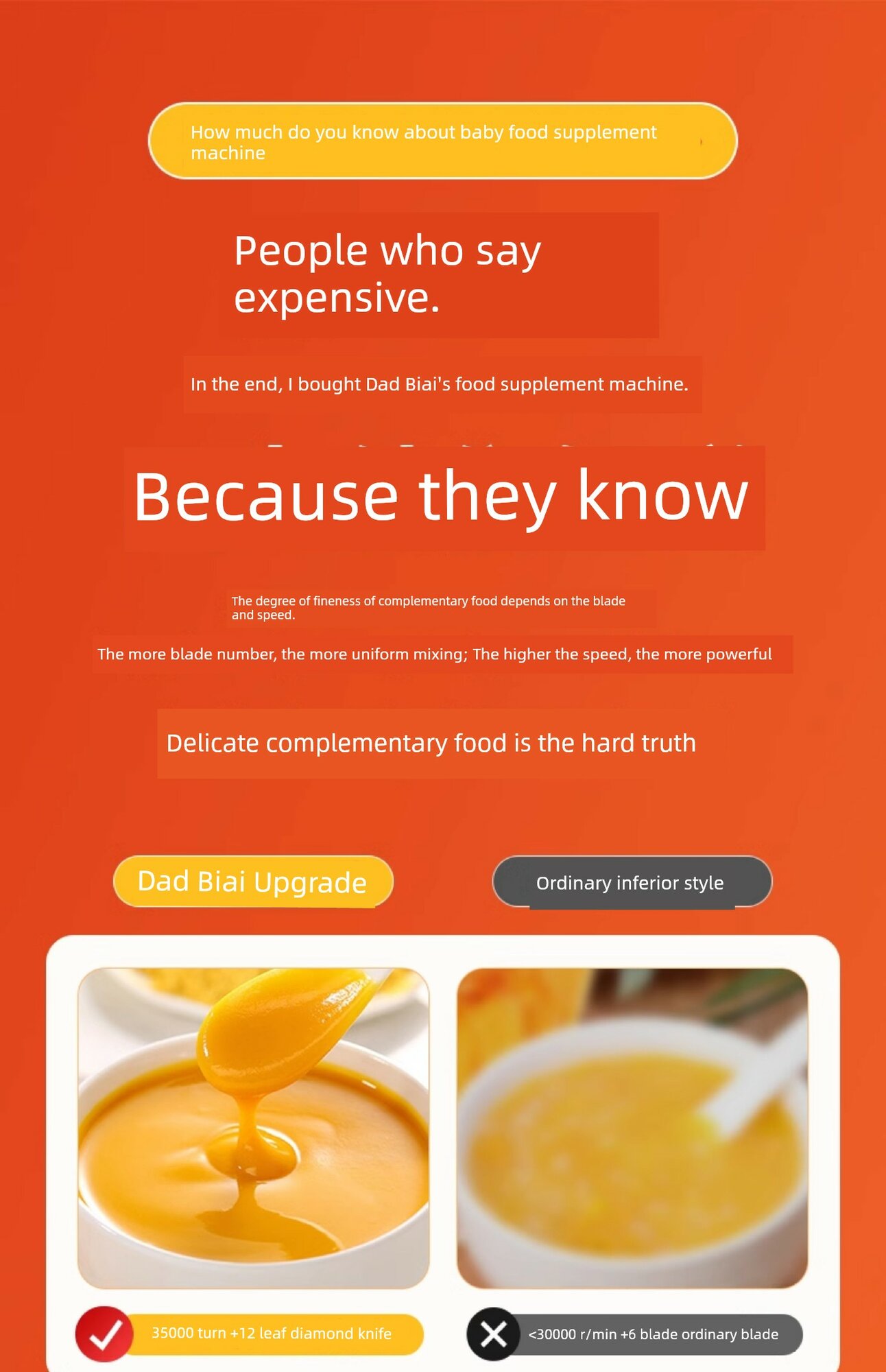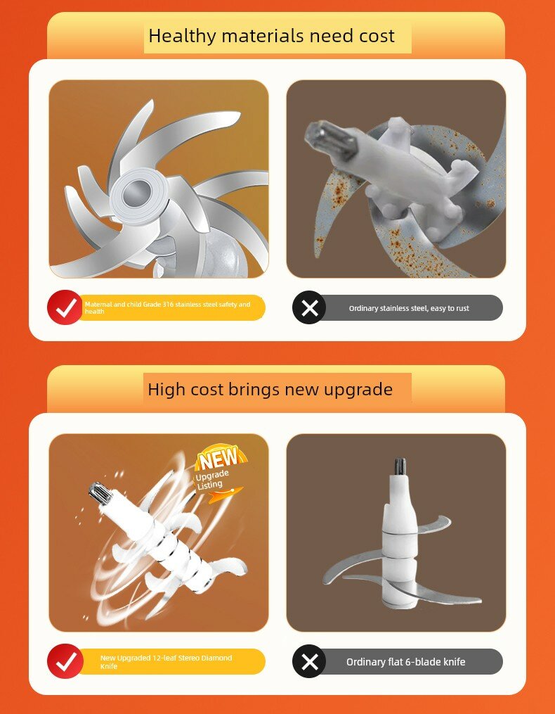 Детский кухонный комбайн для приготовления пюре - [Улучшенный: двойная чаша и двойной нож] 316, 12 лезвий, 35000 об/мин