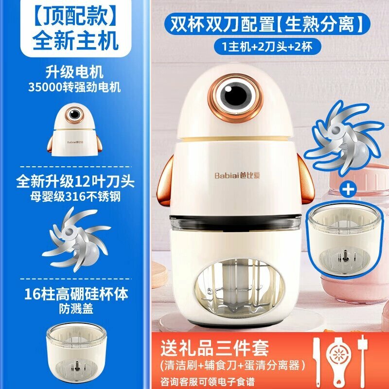 Детский кухонный комбайн для приготовления пюре - [Базовый: двойная чаша и двойной нож] 304, 6 лезвий, 32000 об/мин