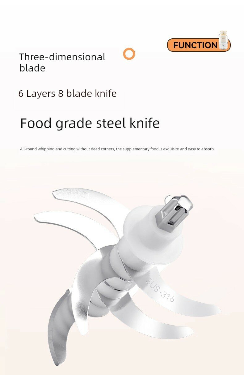 Улучшенный измельчитель детского питания с 8 лезвиями, двойной нож, двойная стеклянная емкость 300 мл, кремовый