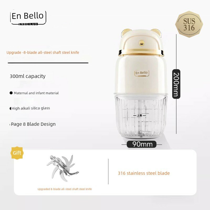 Улучшенный измельчитель детского питания с 8 лезвиями, двойной нож, двойная стеклянная емкость 300 мл, кремовый