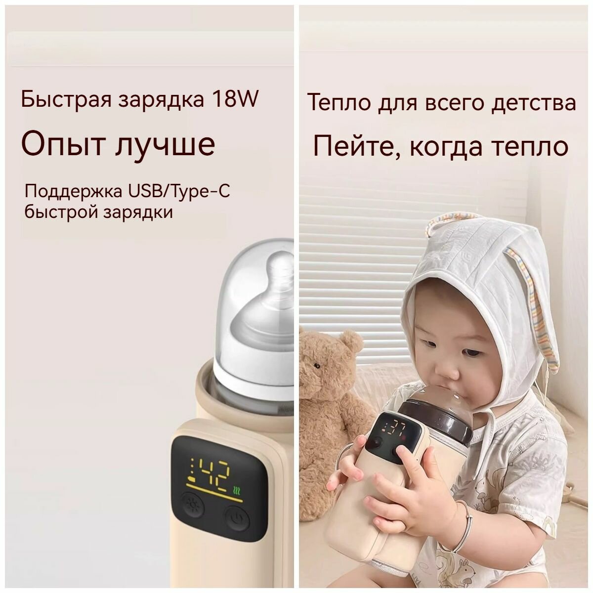 СохранитьПодогреватель для бутылок. Термоизоляционный рукав для детской бутылочки с постоянной температурой.8000 мАч/быстрая зарядка/бежевый. Лучший выбор для детских товаров. интересное: