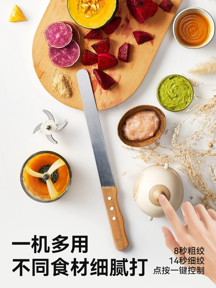 Купить Детский кухонный комбайн с двойной чашей, ножами и контейнером для прикорма (молочный)