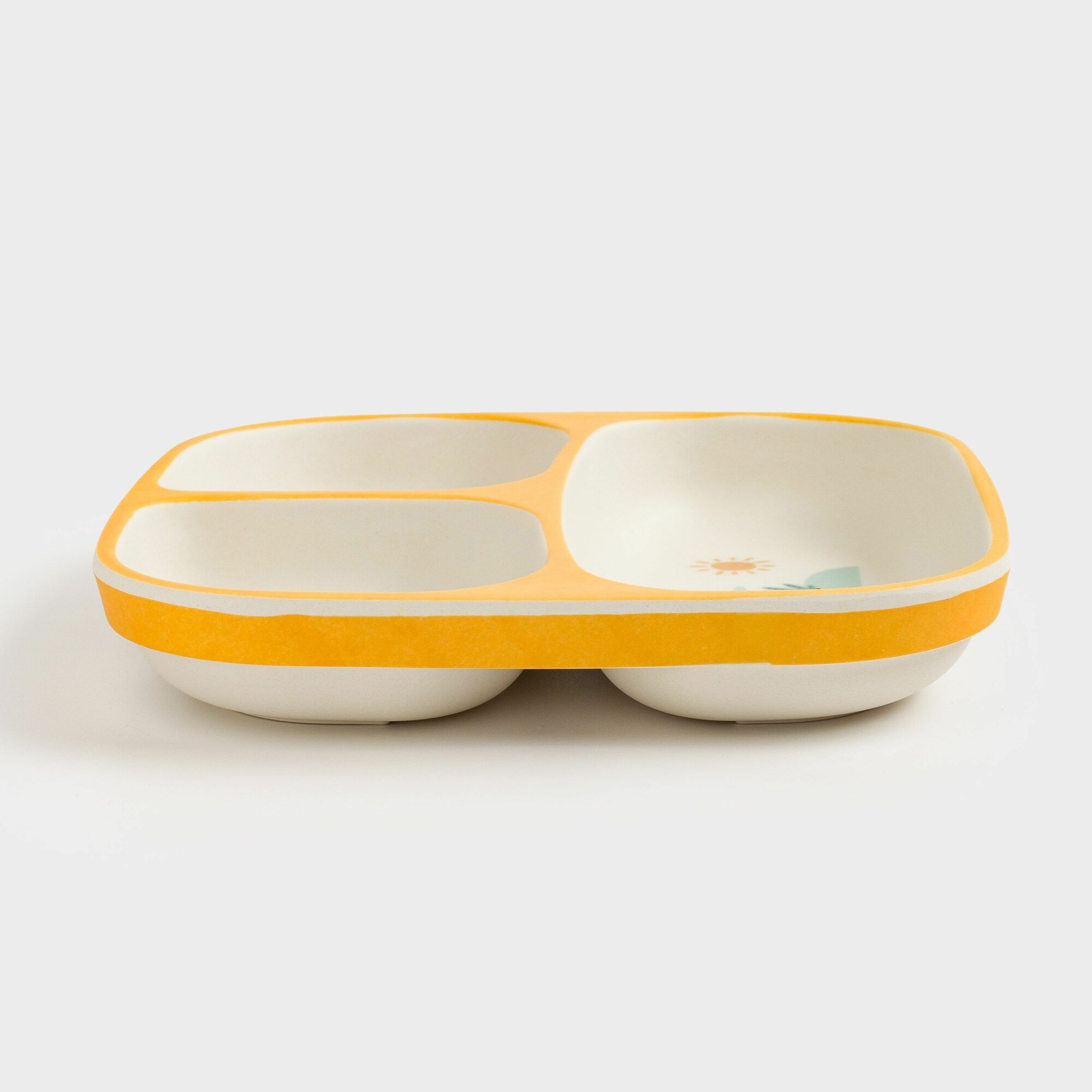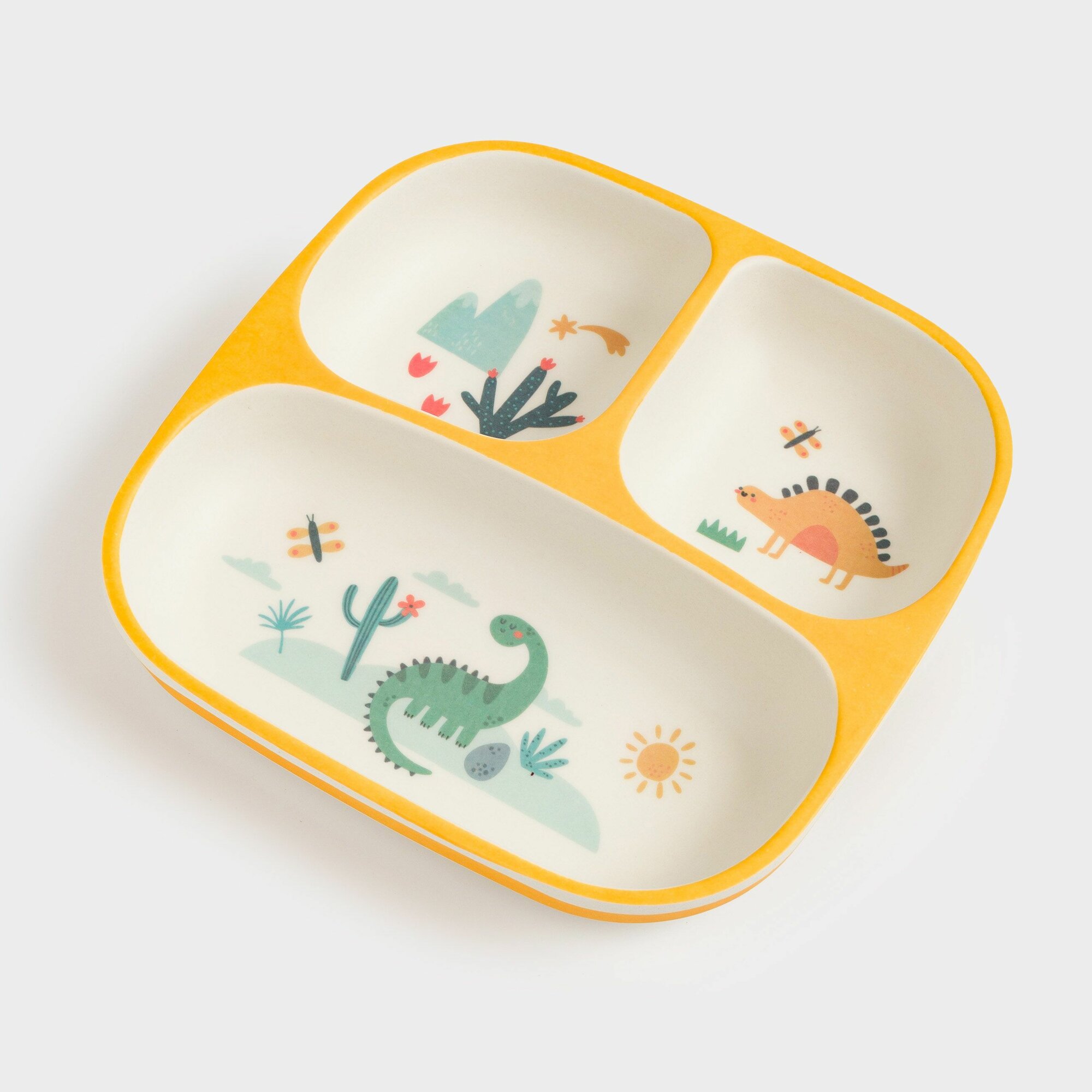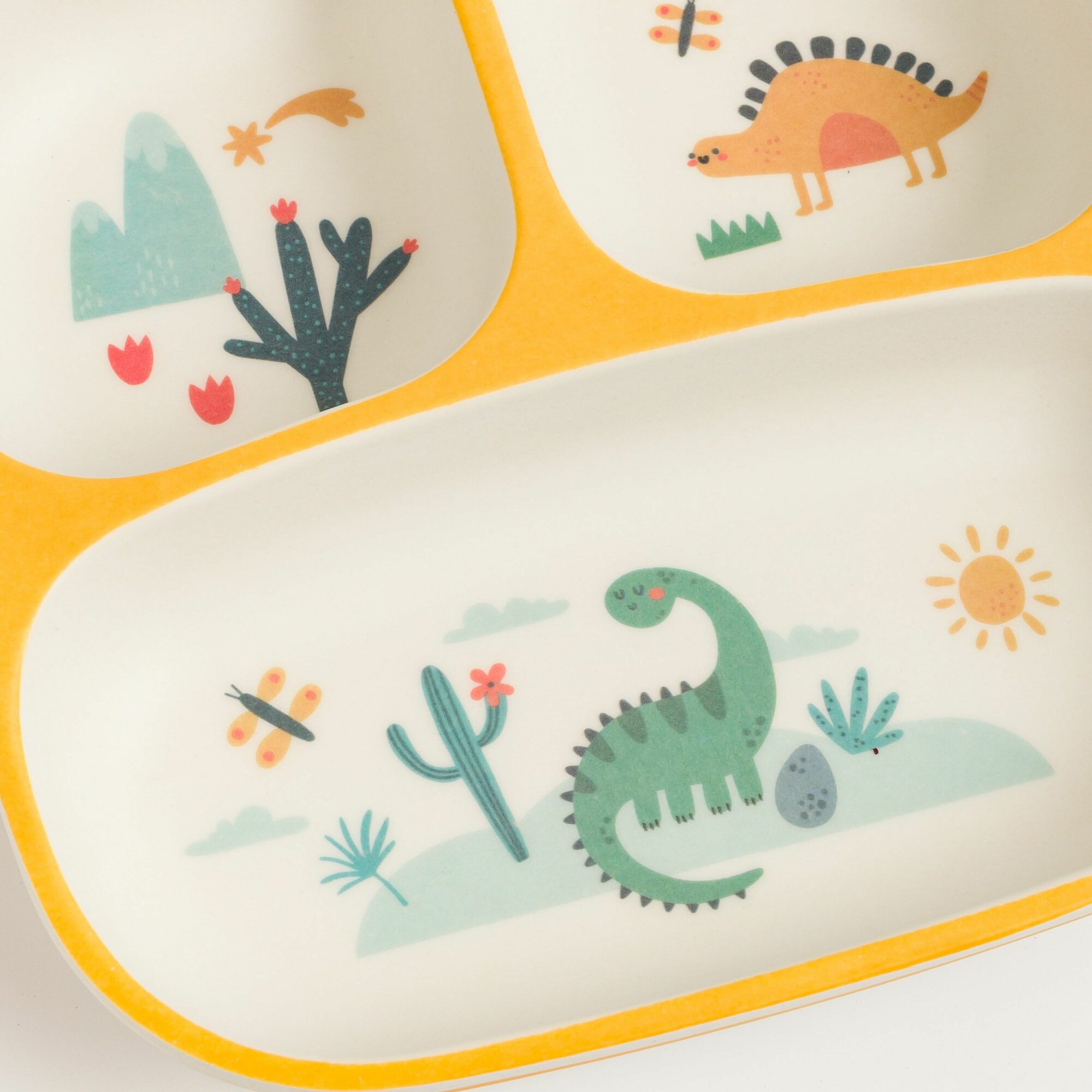 Купить Тарелка обеденная, детская, Kuchenland, 18 см, квадратная, желтая, Динозавры, Dino