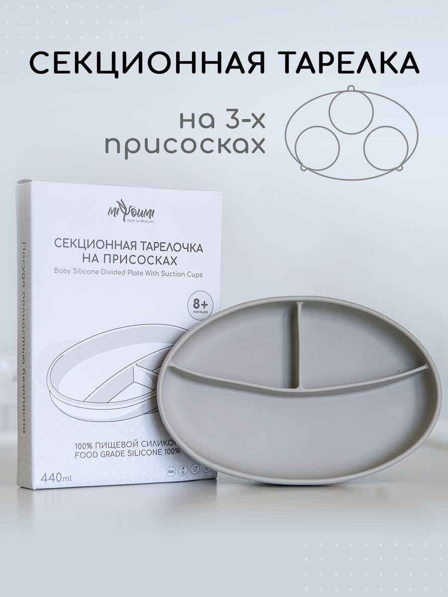 Купить Силиконовая секционная тарелка на присоске Miyoumi, тарелка детская