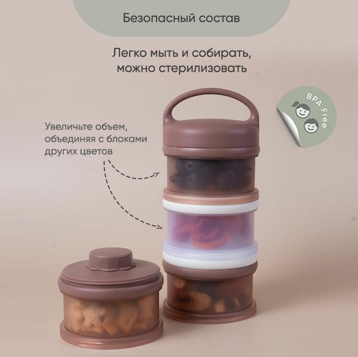 Контейнер для детского питания paomma Taupe, пластик, 270мл, 3 отделения интересное: