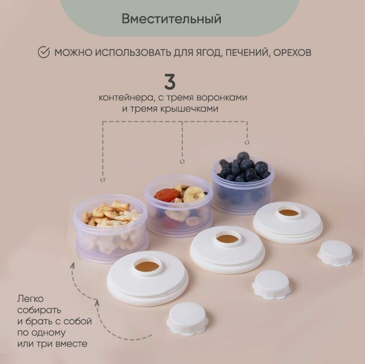 Контейнер для детского питания paomma Taupe, пластик, 270мл, 3 отделения