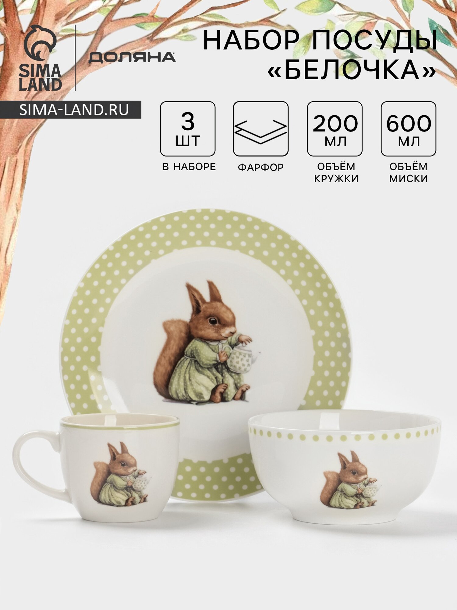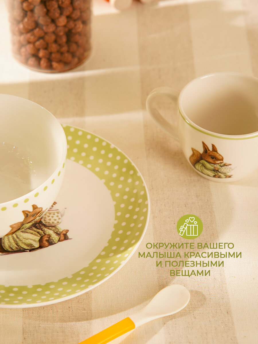 Набор детской посуды 3 предмета Доляна "Белочка" кружка, миска, тарелка интересное: