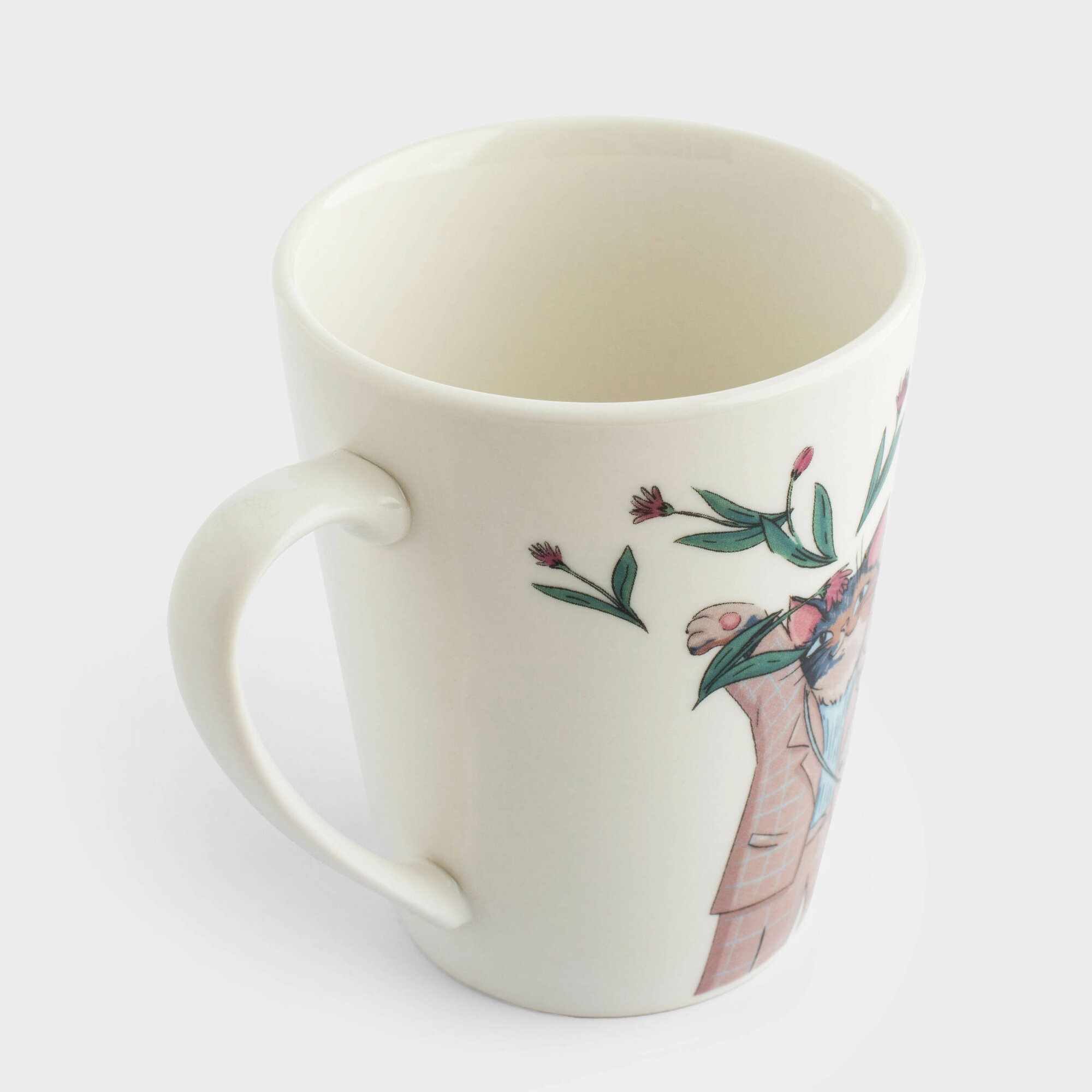 Кружка, 420 мл, фарфор N, белая, Кот с цветами, Cat flower интересное: