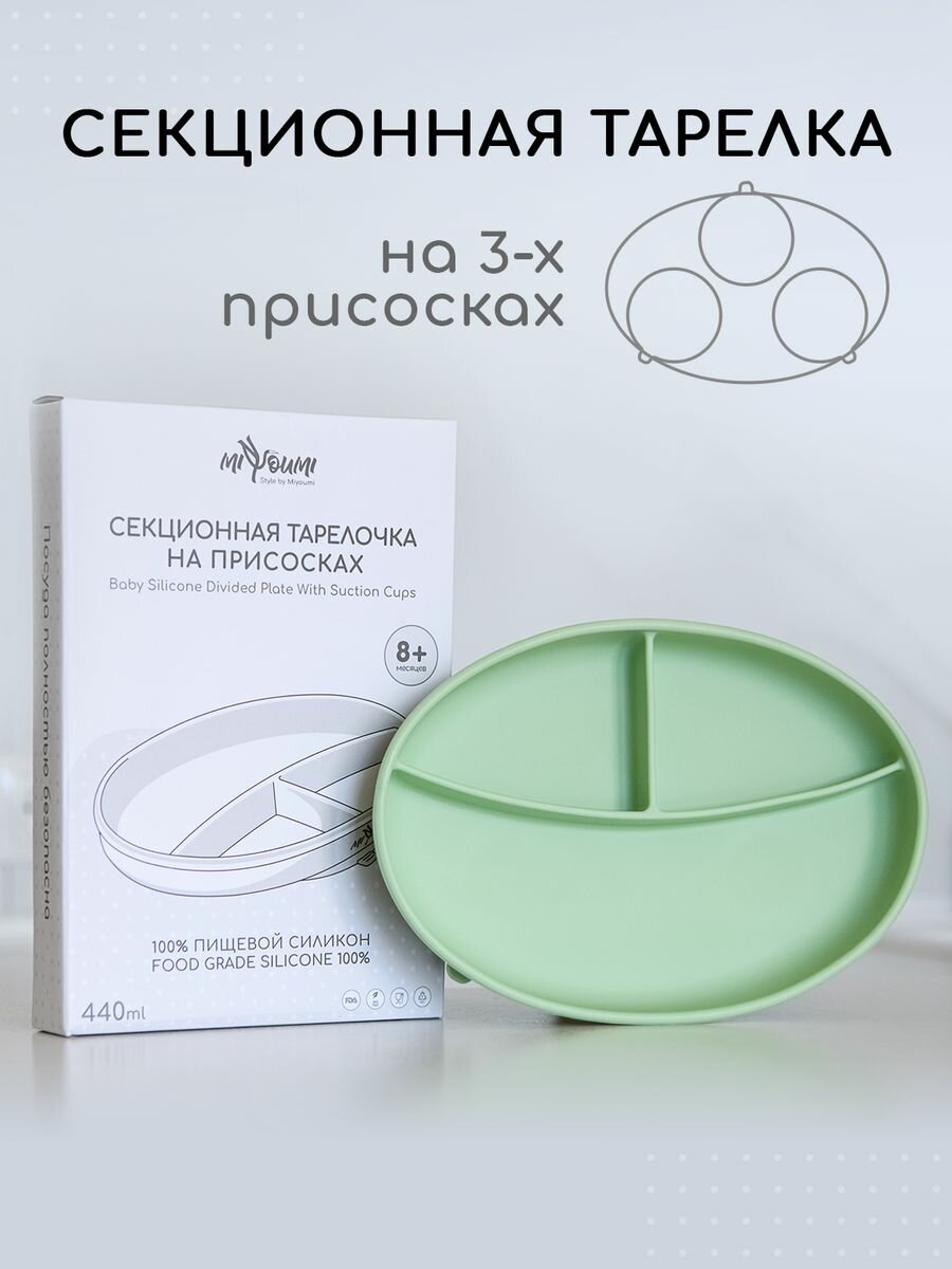 Силиконовая секционная тарелка на присоске Miyoumi, тарелка детская