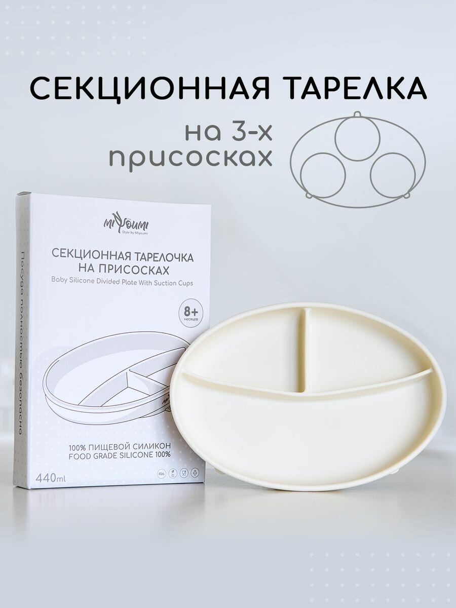 Силиконовая секционная тарелка на присоске Miyoumi, тарелка детская