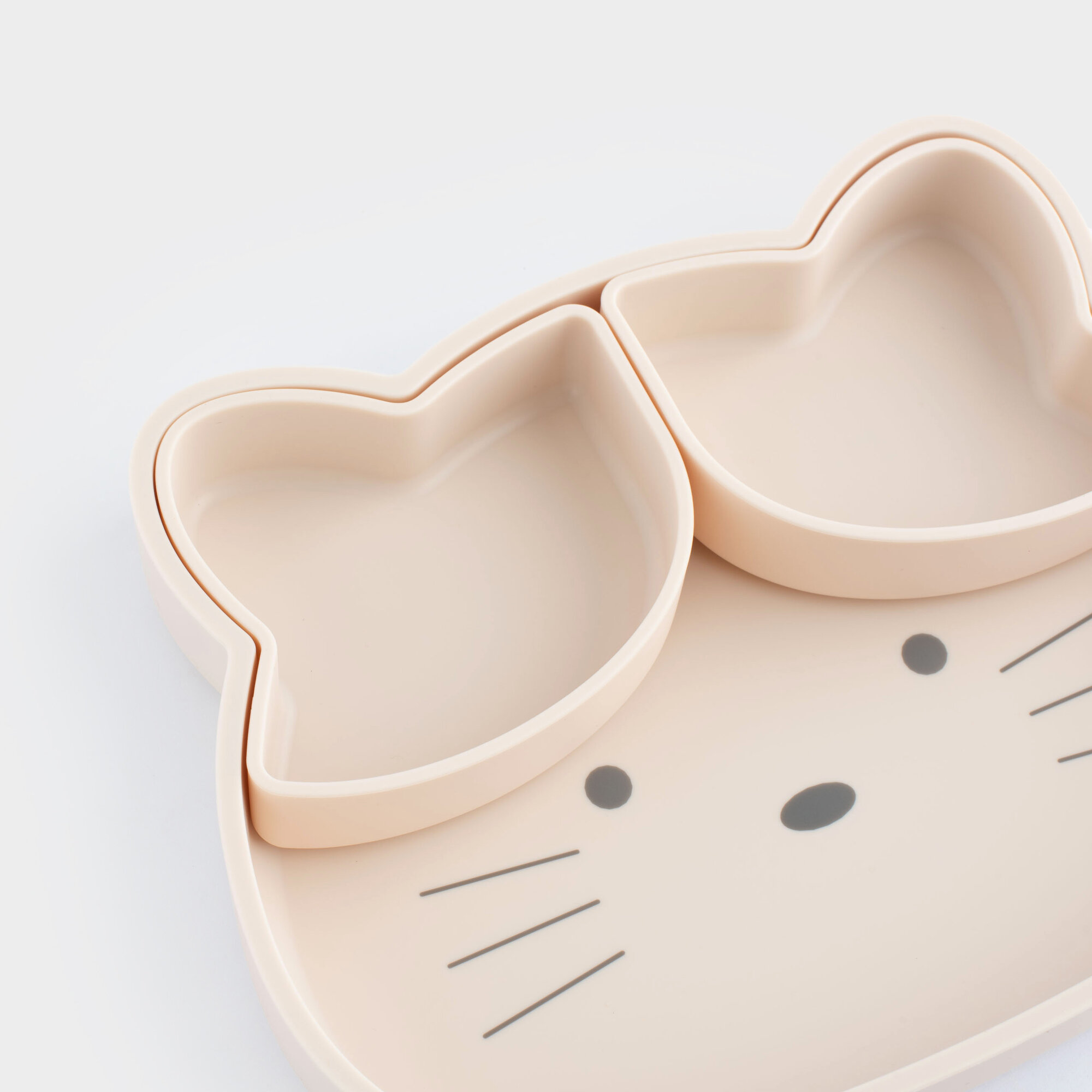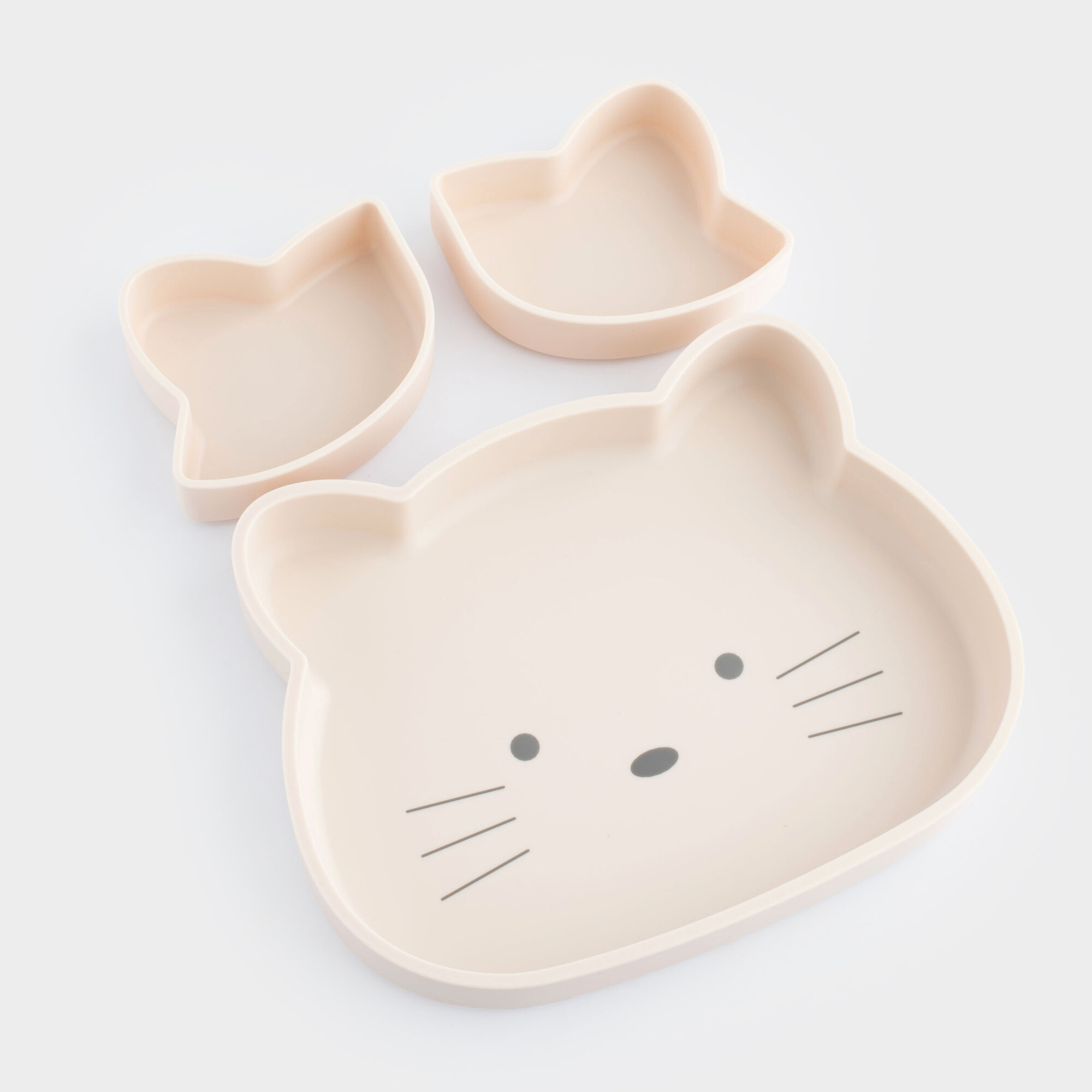 Купить Набор посуды, детский, 3 пр, силикон, бежевый, Кошка, Kiddy