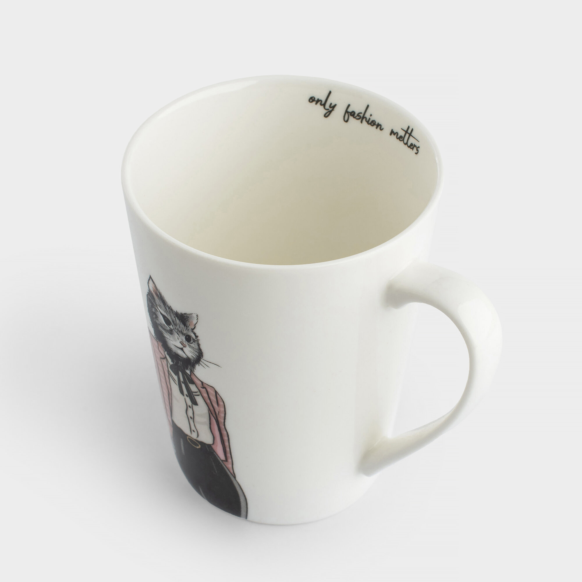 Кружка, 420 мл, фарфор N, белая, Кошка в костюме, On style интересное: