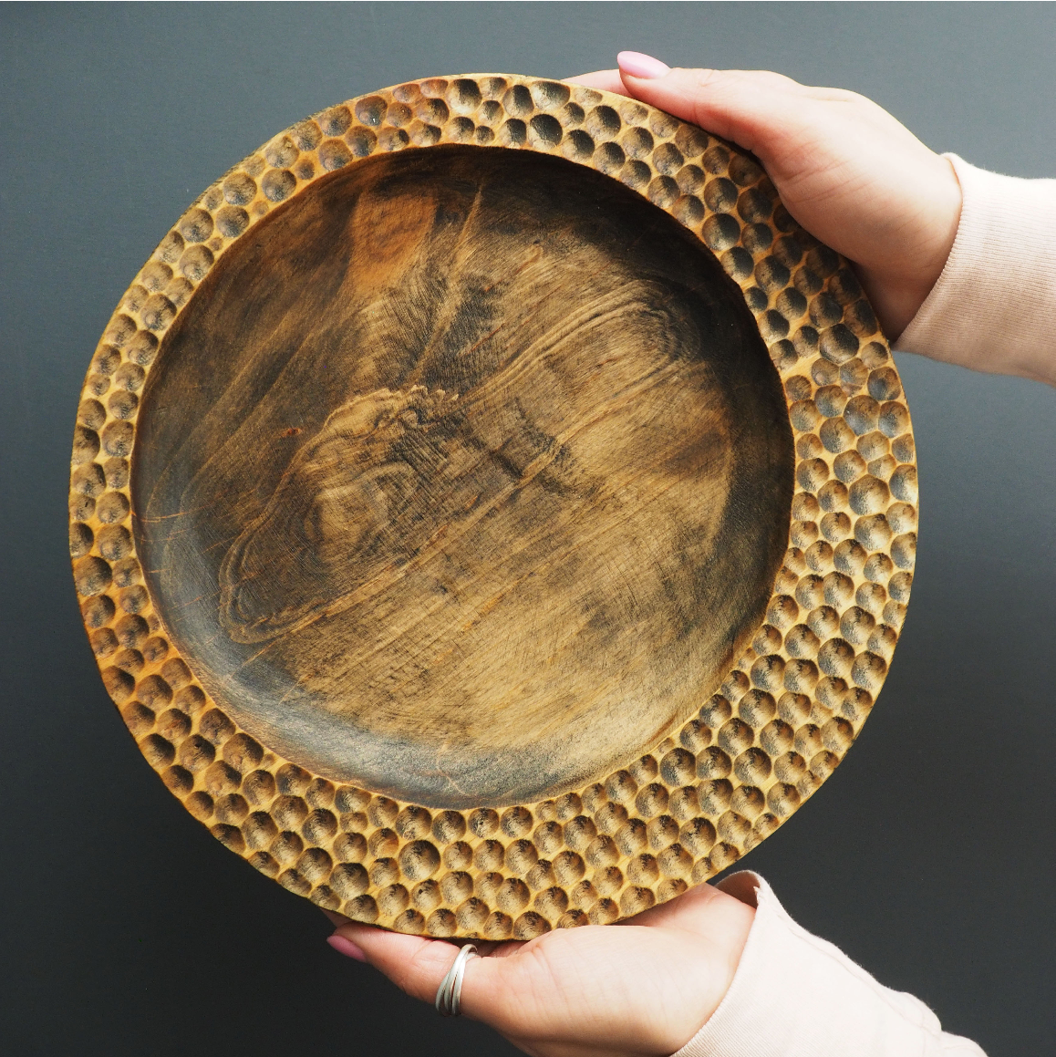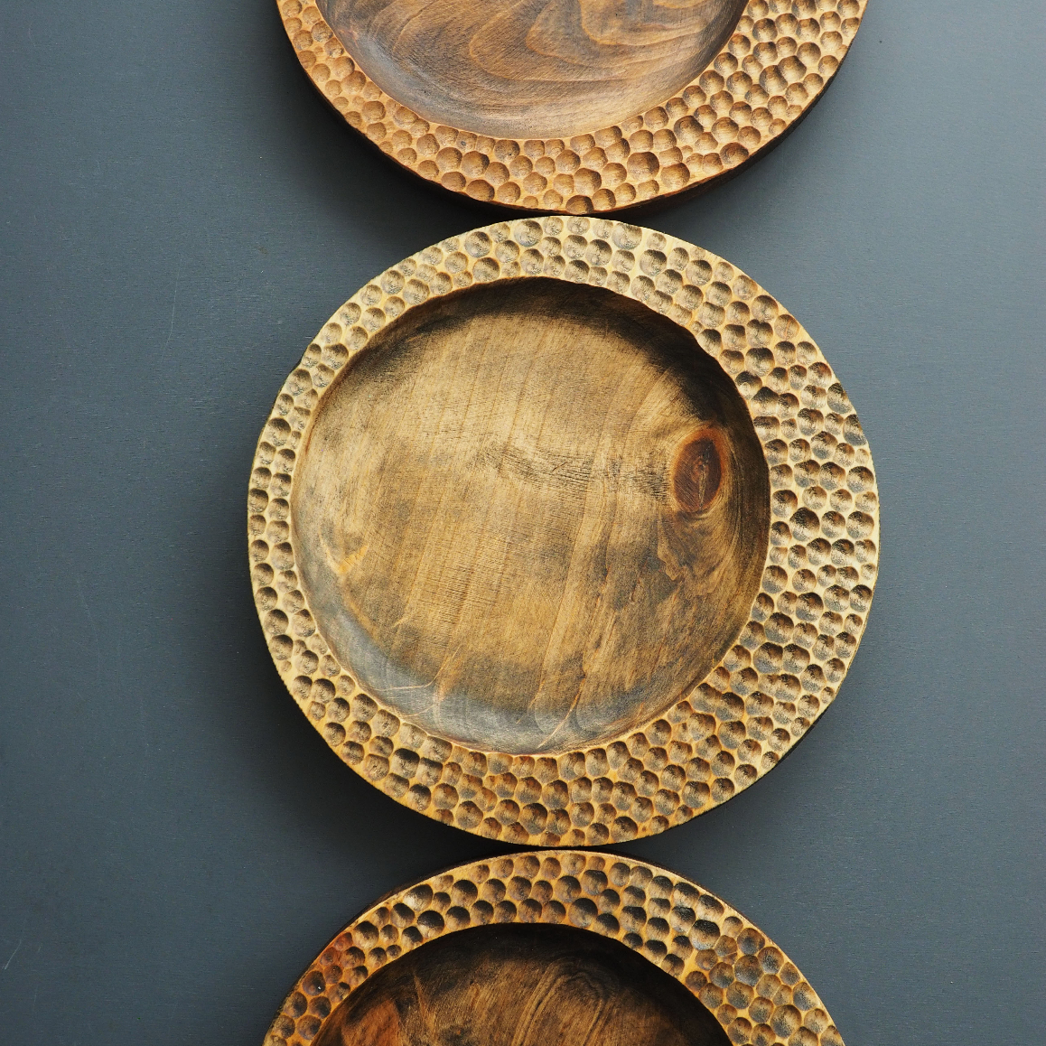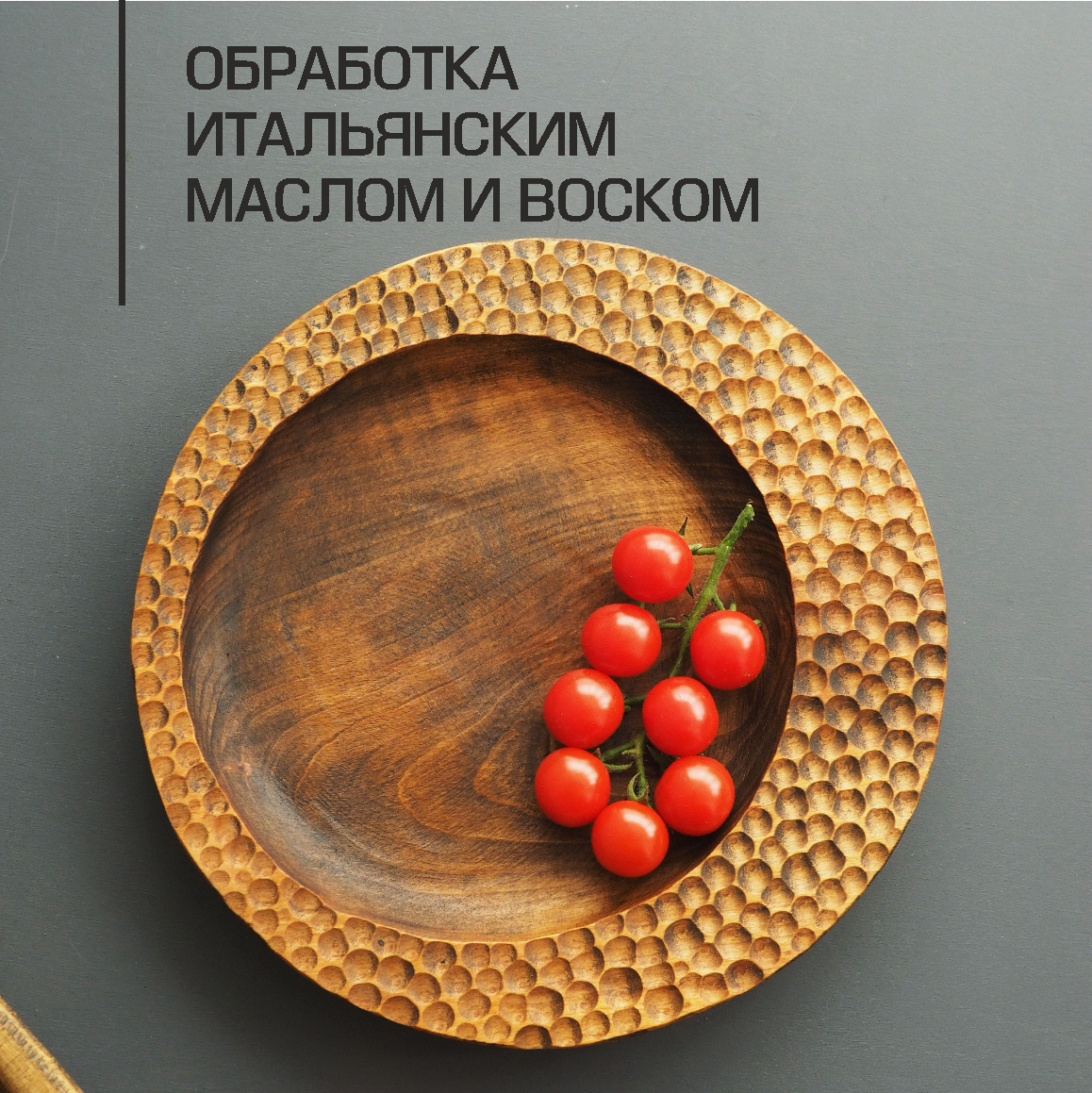 Круглая резная плоская деревянная тарелка для сервировки стола интересное: