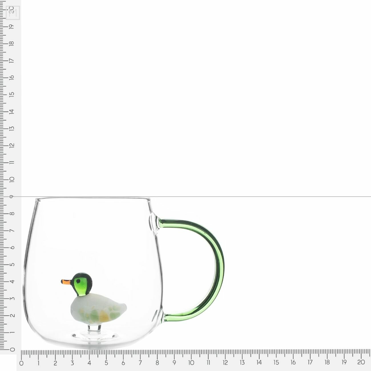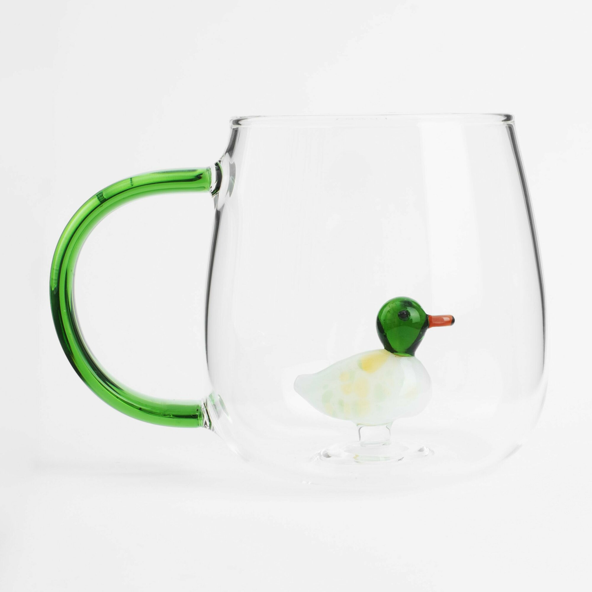 Купить Кружка, 400 мл, стекло Б, зеленая ручка, Утка, Shape