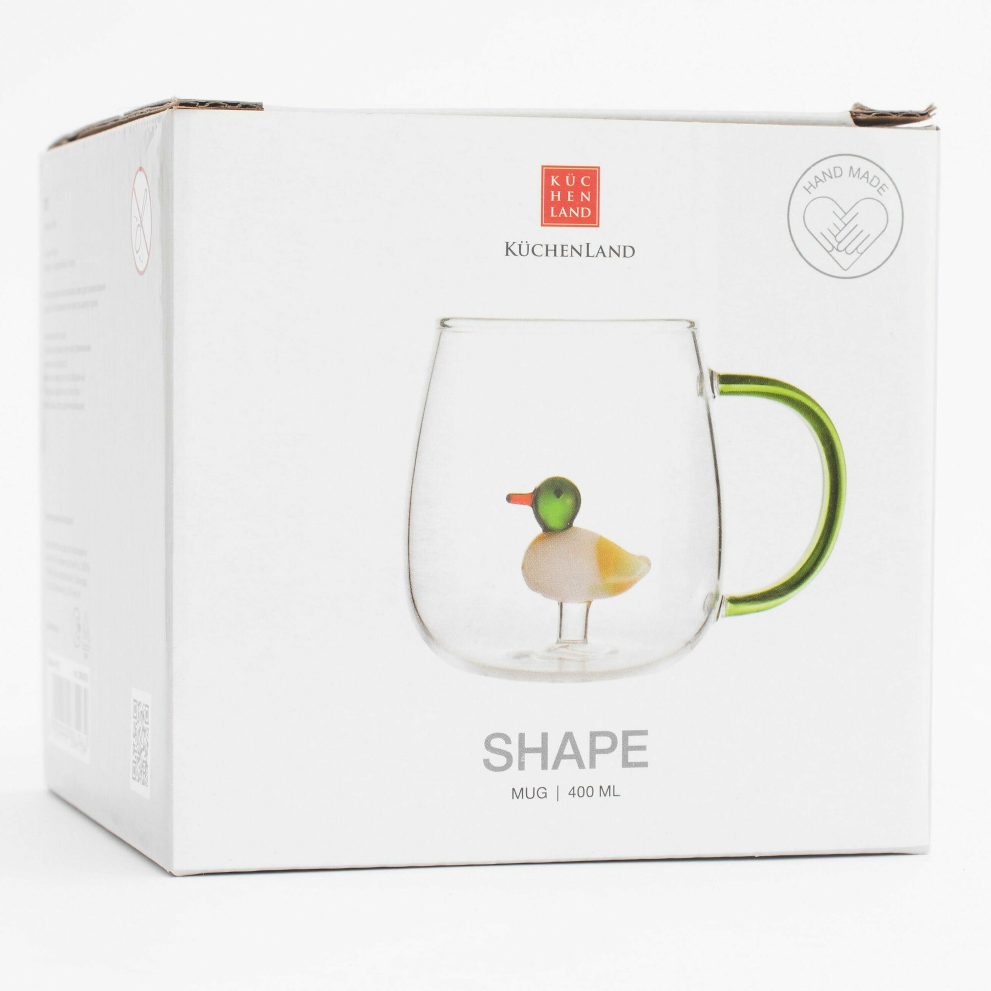 Кружка, 400 мл, стекло Б, зеленая ручка, Утка, Shape интересное: