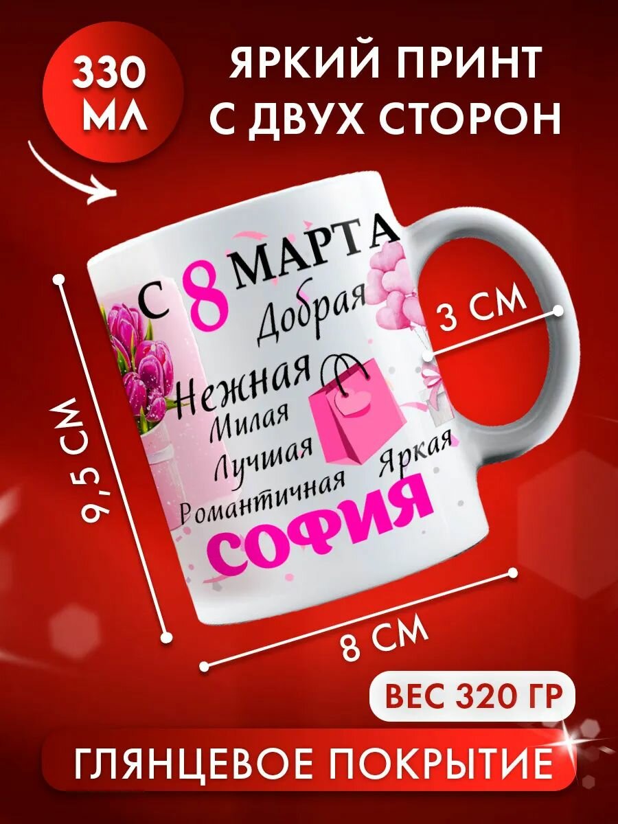 Ниже Вы можете прочитать отзывы на Кружка на 8 марта именная София, ознакомится с подробными характеристиками, посмотреть интересные обзоры и фотографии на Кружка на 8 марта именная София.
