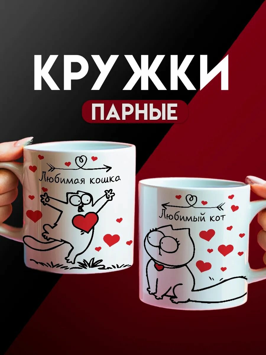 Купить Кружки парные на 14 февраля, Любимый кот кошка