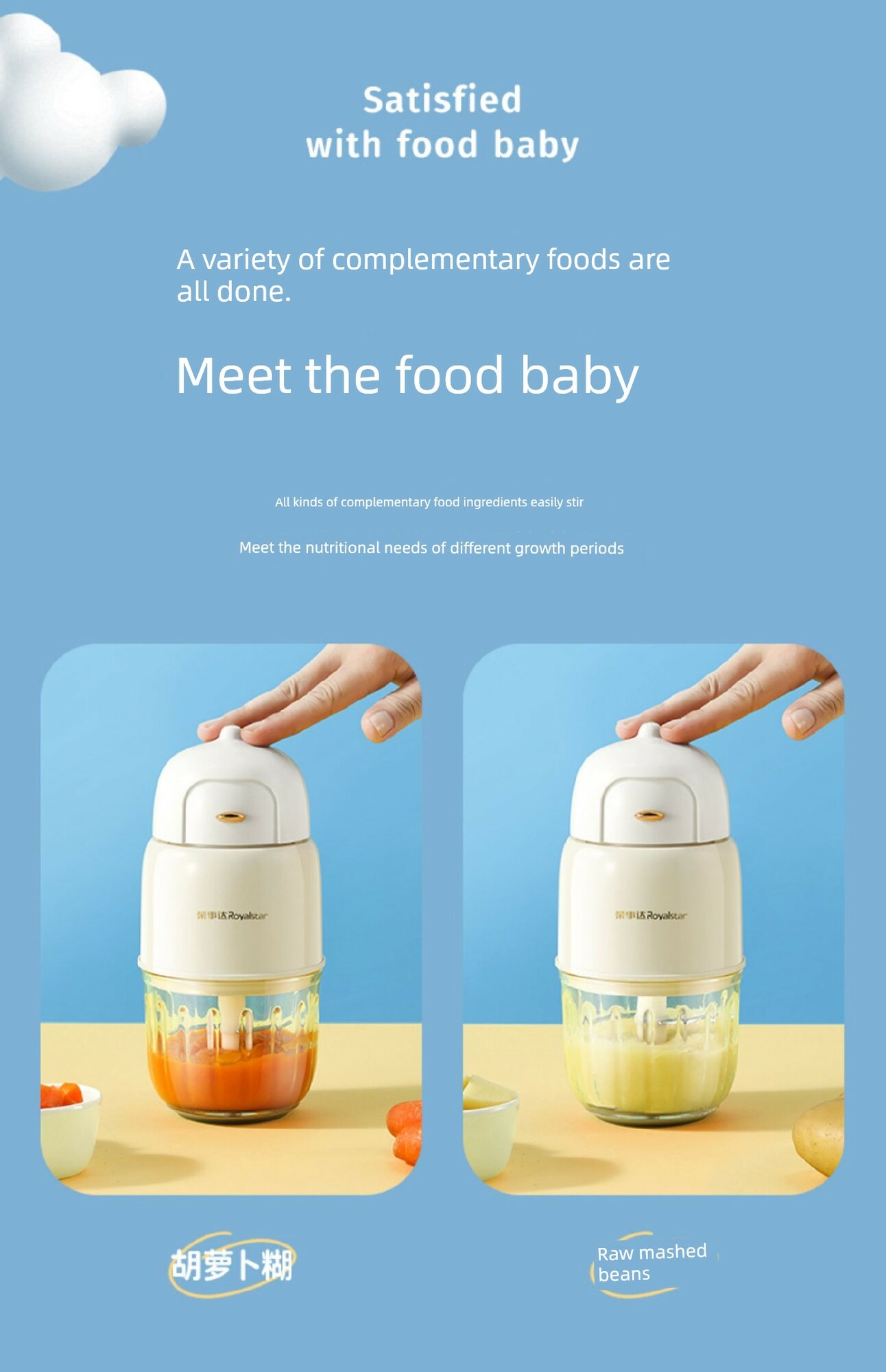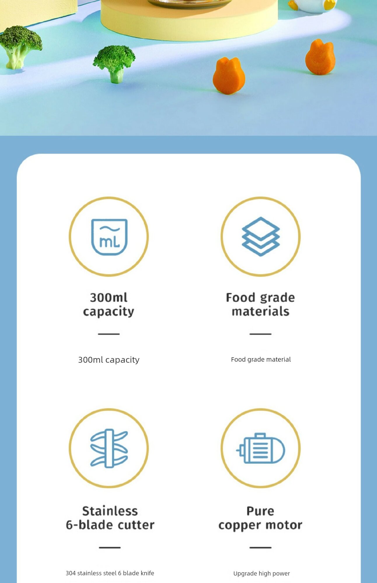 Детский блендер для прикорма, нож 8 лезвий из стали 316 + одинарная чаша