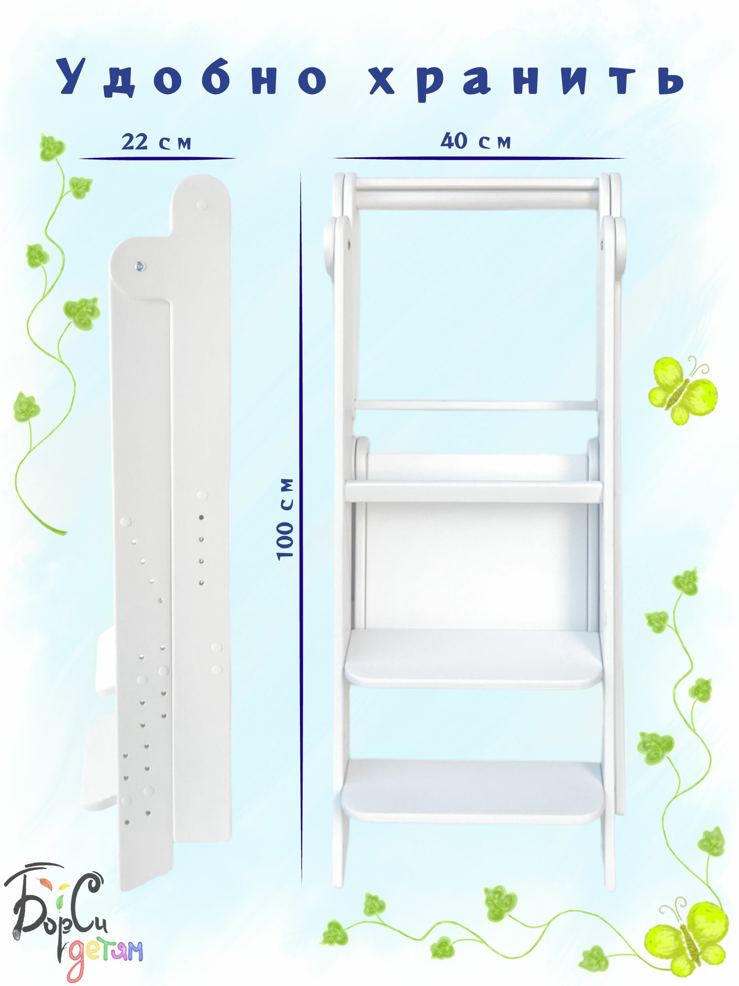 Башня помощника Монтессори с меловой доской, растущий стул-стремянка (белая эмаль) интересное:
