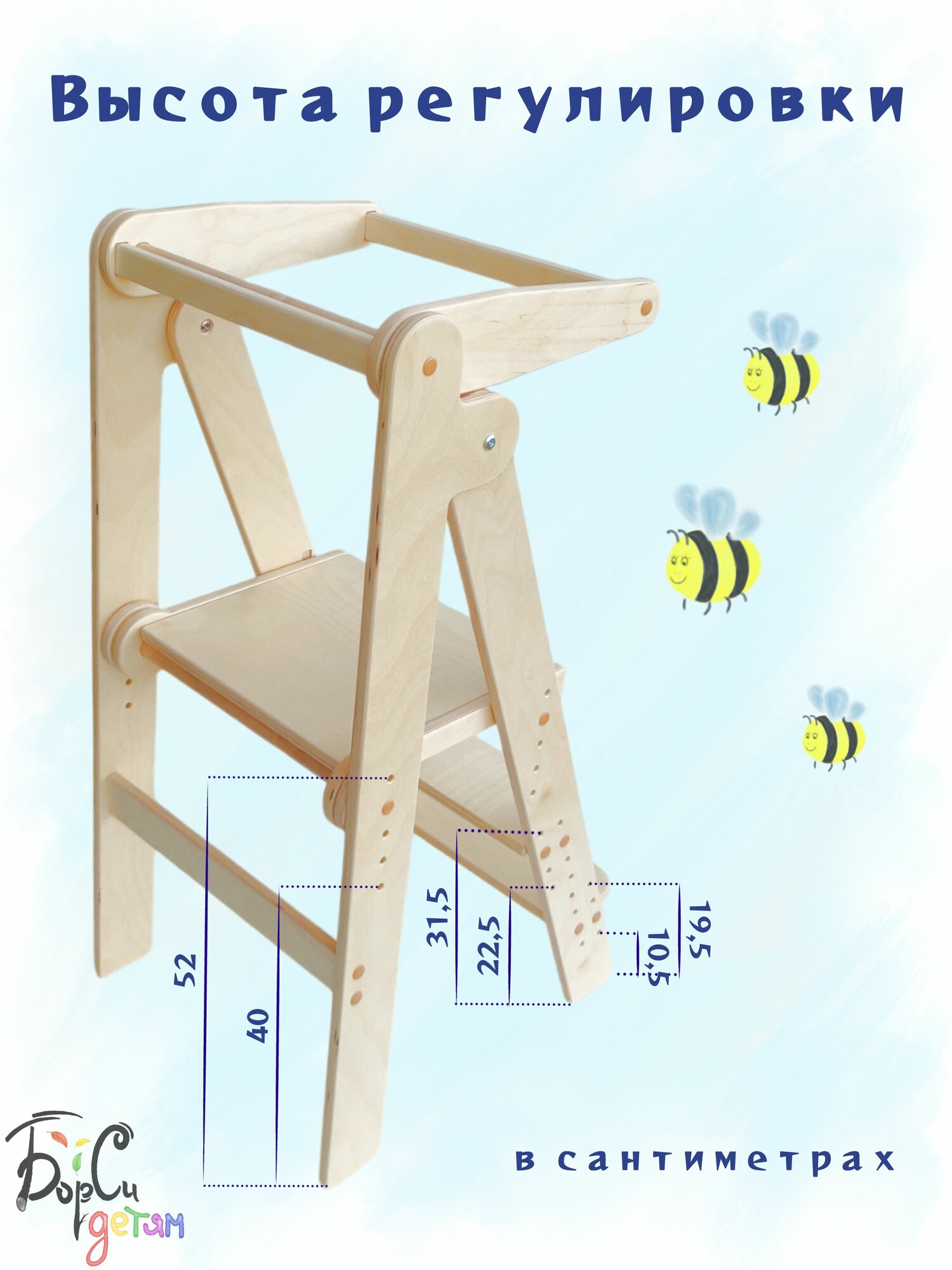 Башня помощника Монтессори, растущий стул-стремянка (прозрачный лак) интересное: