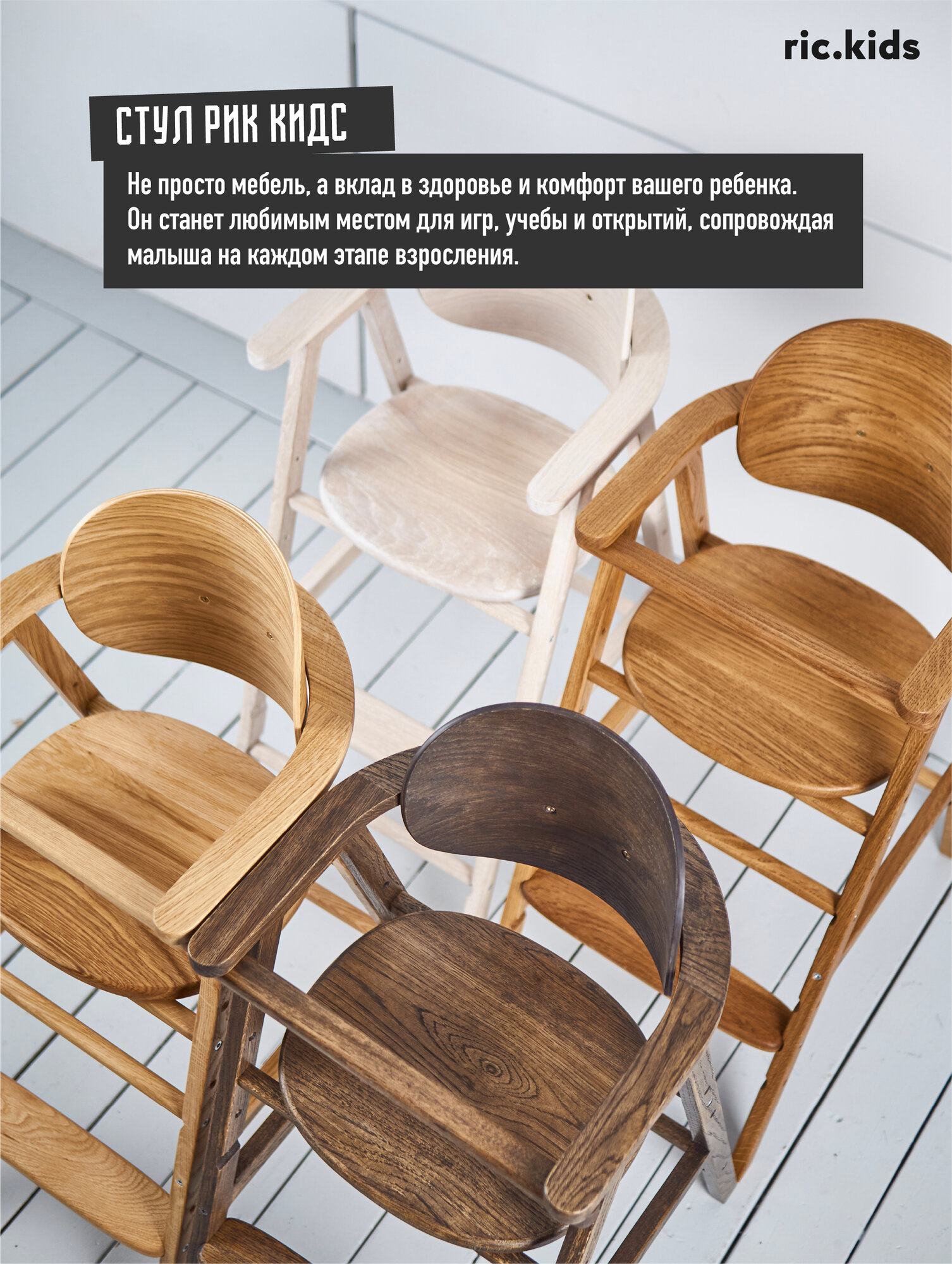 Стульчик для кормления из дуба Ric Kids для детей и школьников, цвет натуральный дуб интересное: