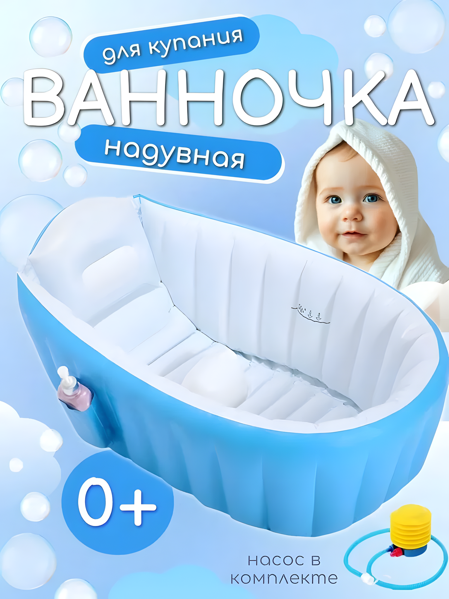 Ванночка для купания новорожденных, надувная, цвет голубой,синий интересное: