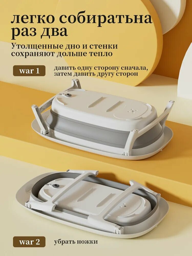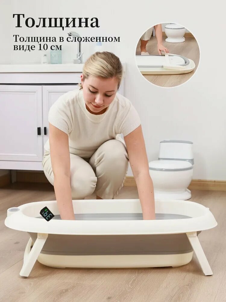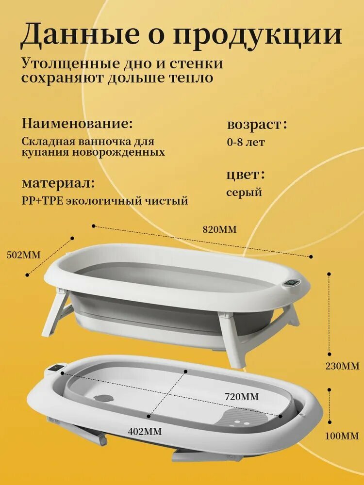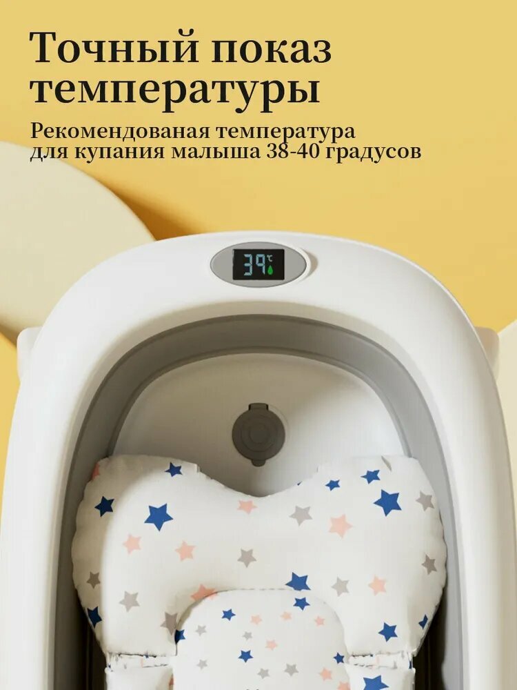 Складная ванночка для купания младенцев с термометром, для новорожденных и детей до 18 месяцев, с шапочкой и плавающим ковриком