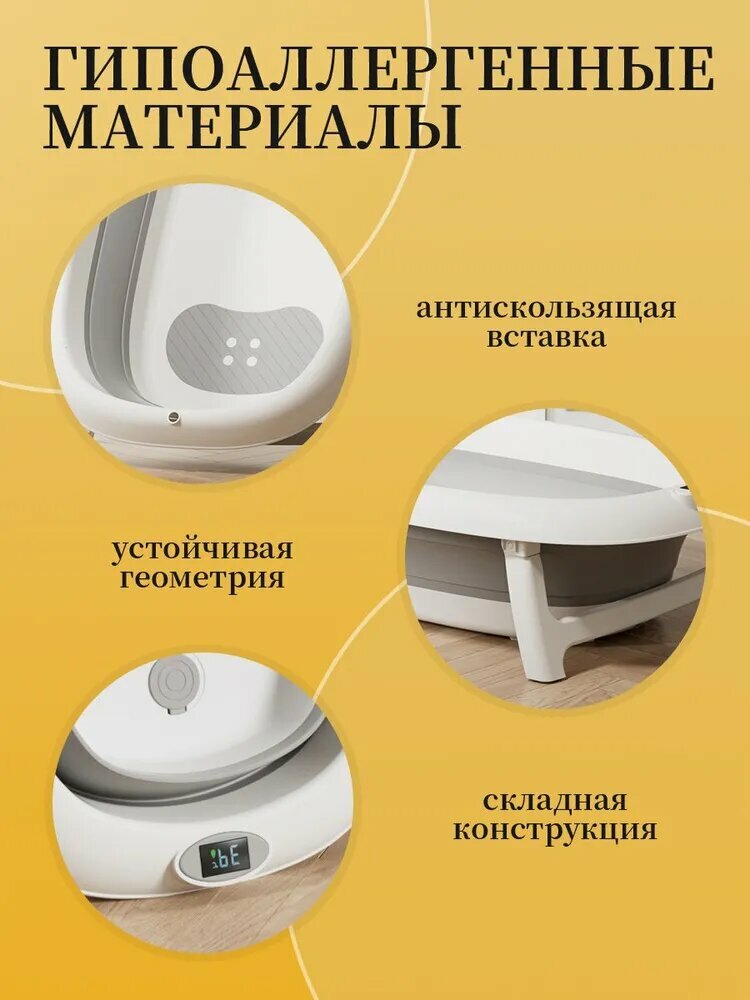 Большая ванночка для купания новорожденных с термометром. В комплекте: матрас и ковш. интересное: