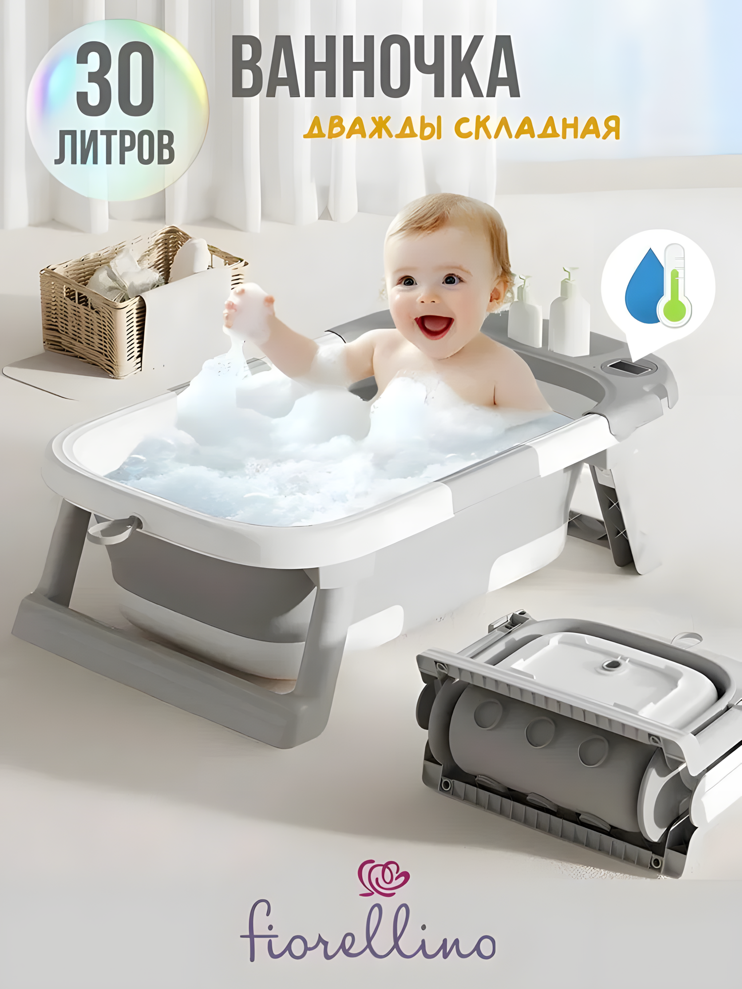 Купить Складная ванночка Fiorellino для купания новорожденных с термометром