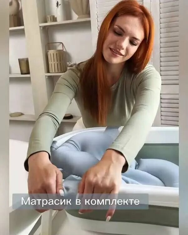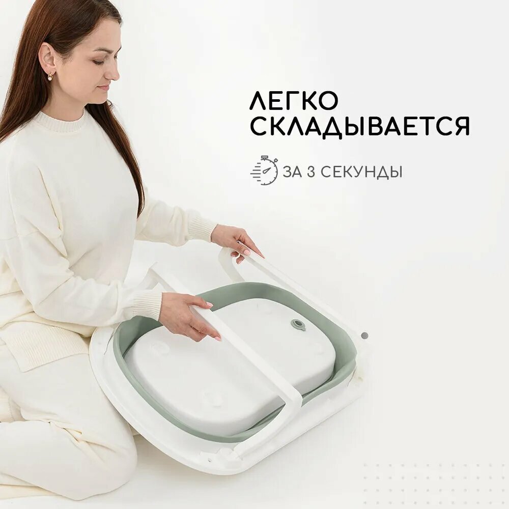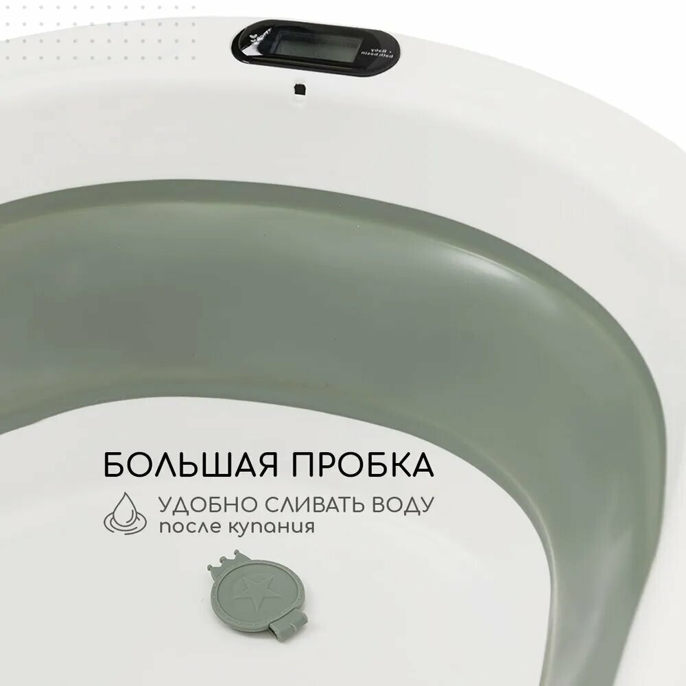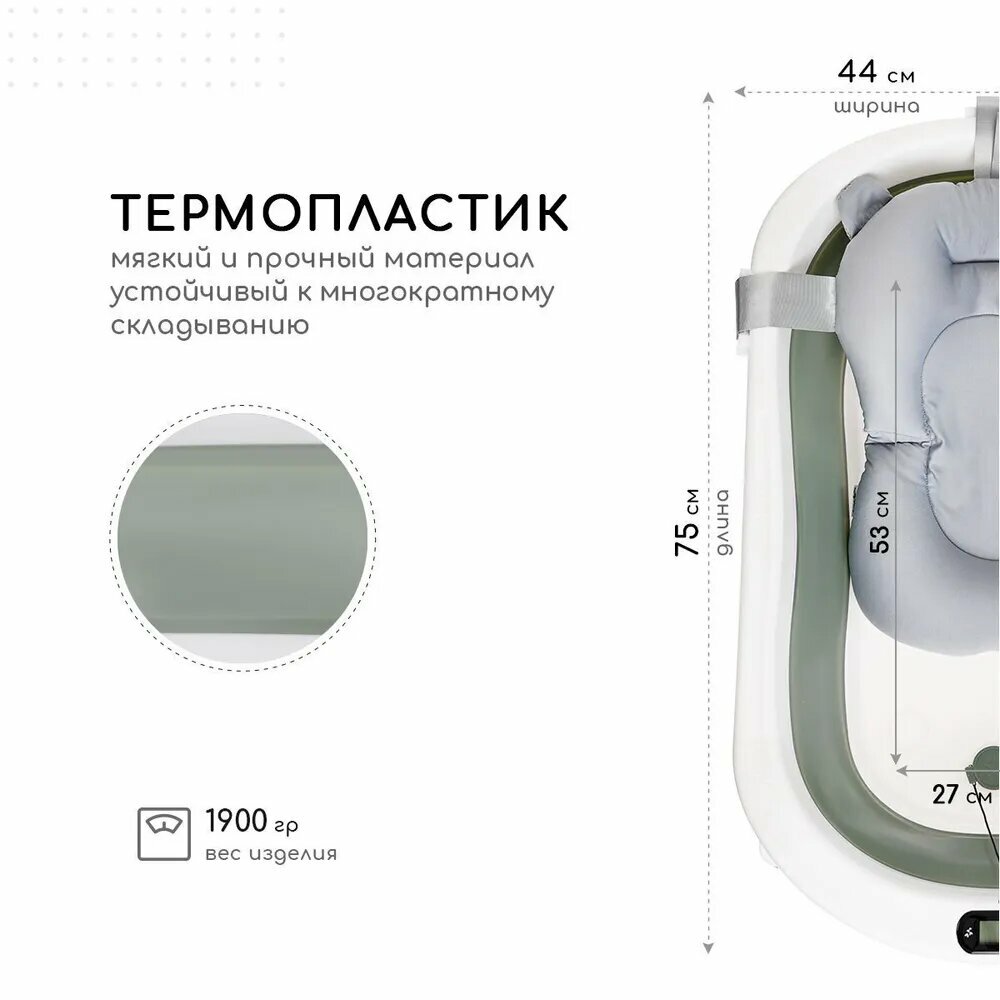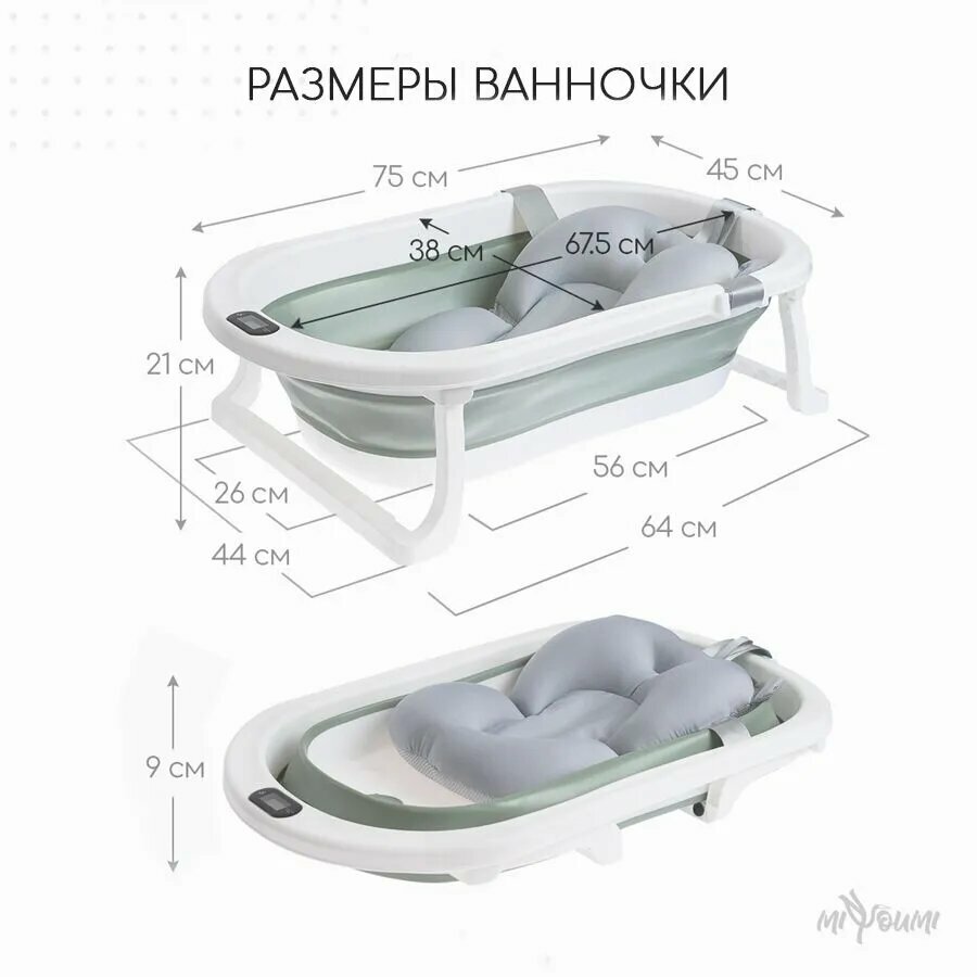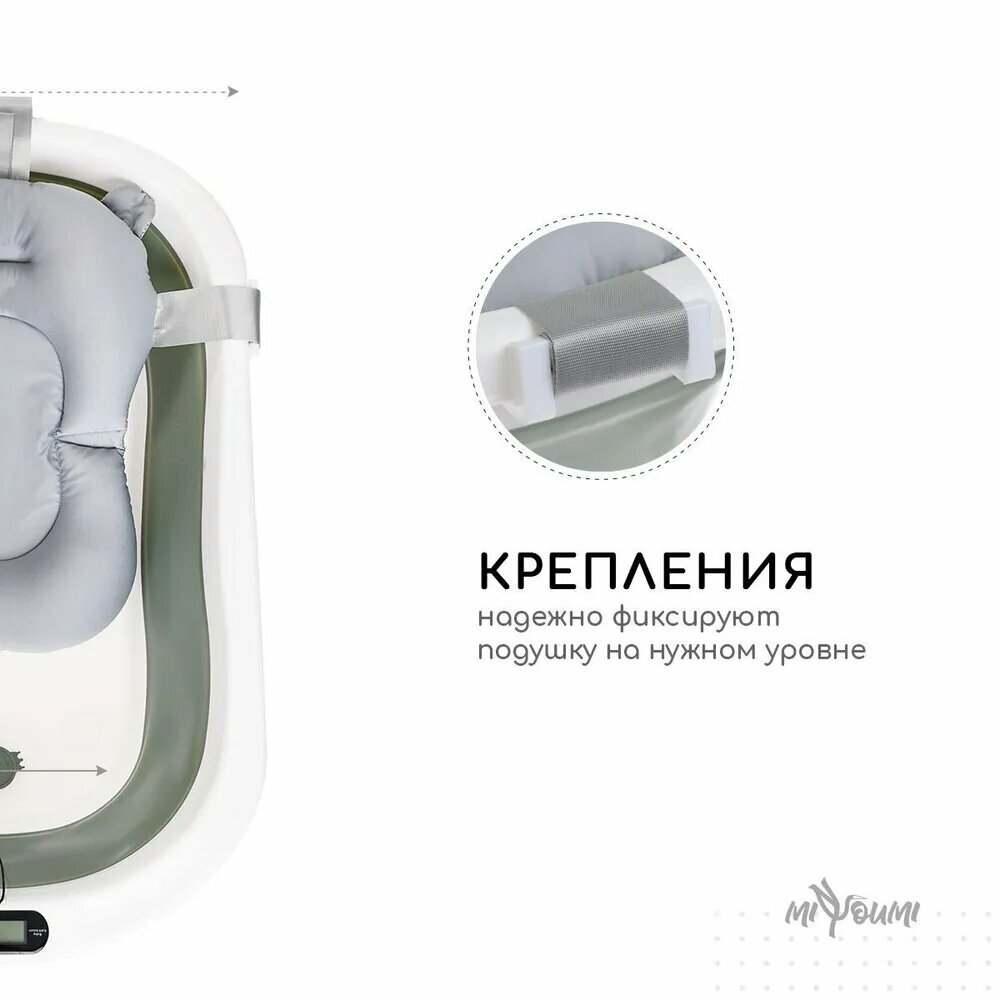 Ванночка для купания новорожденных , Miyoumi складная, с термометром. Комплект с матрасиком и ковшик для купания цвет Sage интересное: