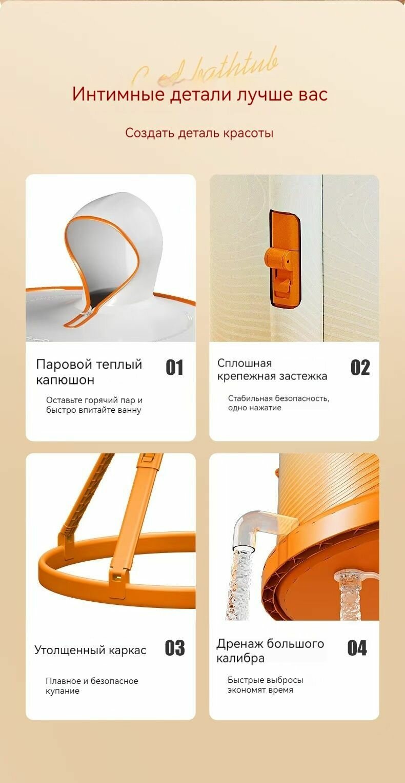Складная ванна с подогревом 42 C, 1200W термостат, 120л для взрослых и детей интересное: