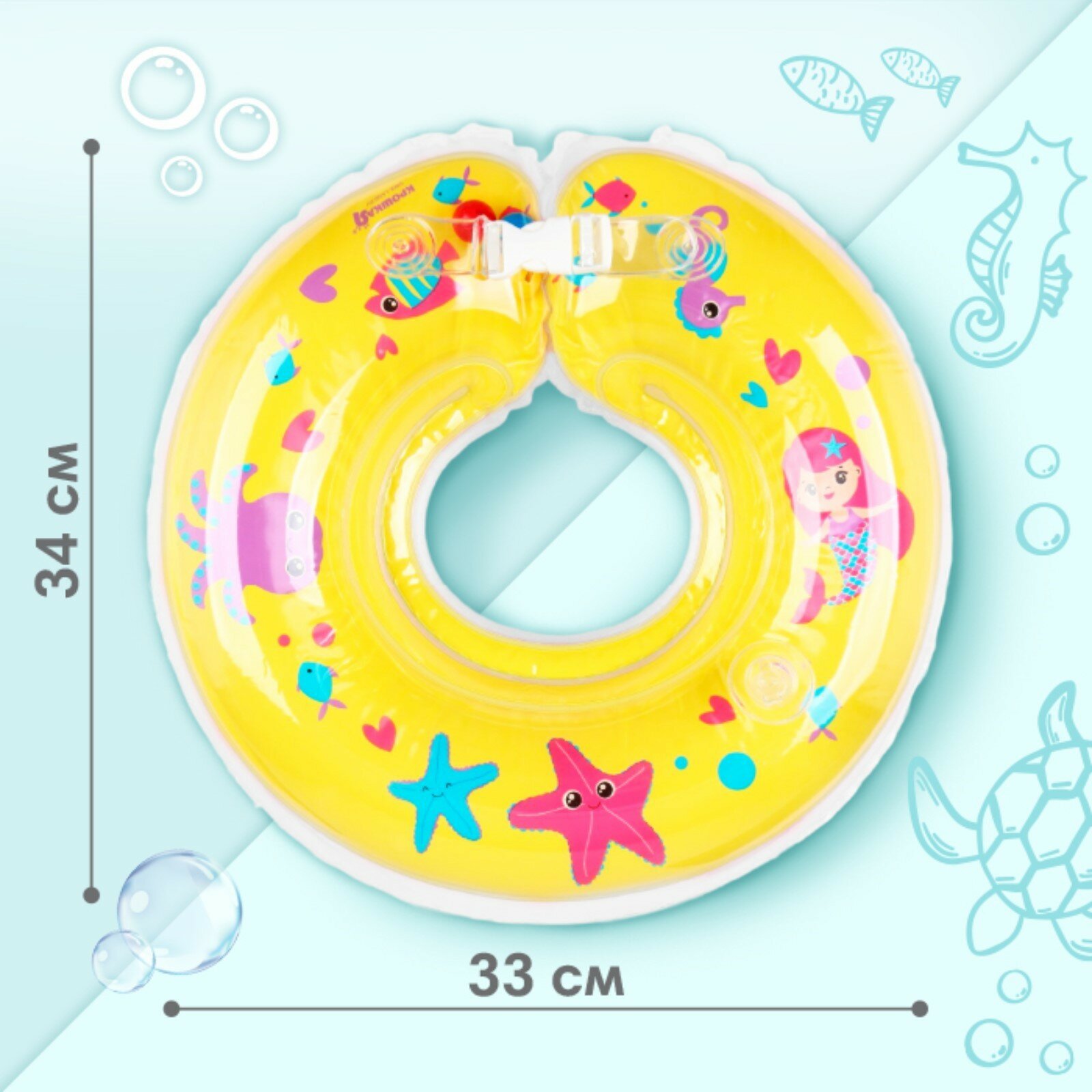 Купить Круг для плавания новорожденных на шею «Русалочки», надувной, с ручками, желтый