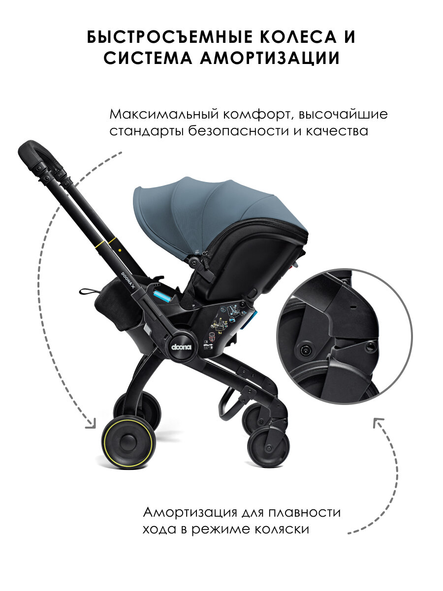 Коляска-автокресло, автолюлька для новорожденных Doona X, цвет: Ocean Blue интересное: